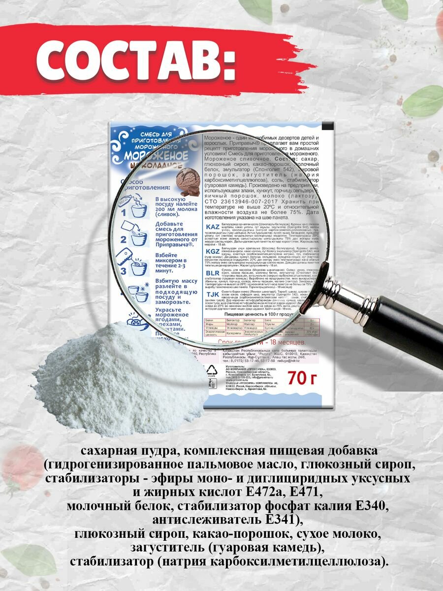 Смесь для приготовления мороженого «Приправыч», шоколадное, 70 г