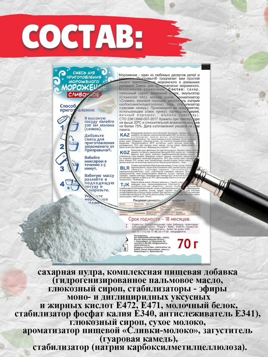Смесь для мороженого Приправыч, Ванильное, сублимированная, 70г, 1 шт