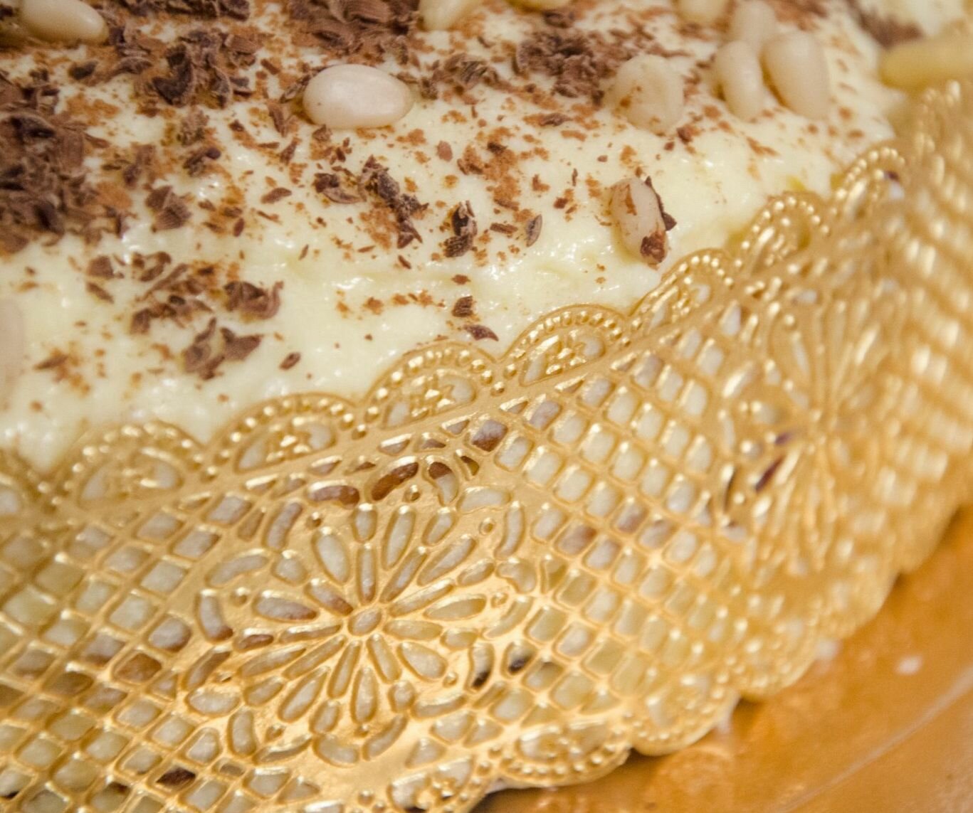 | Состав | Съедобное кружево ручной работы, состав: фруктоза, декстроза, крахмал рисовый, носитель(Е1520), антислеживающий агент(Е555), консерванты (сорбат калия, бензоат натрия), загустители(пектин, гуммиарабик, камедь ксантановая), краситель(Е171). |