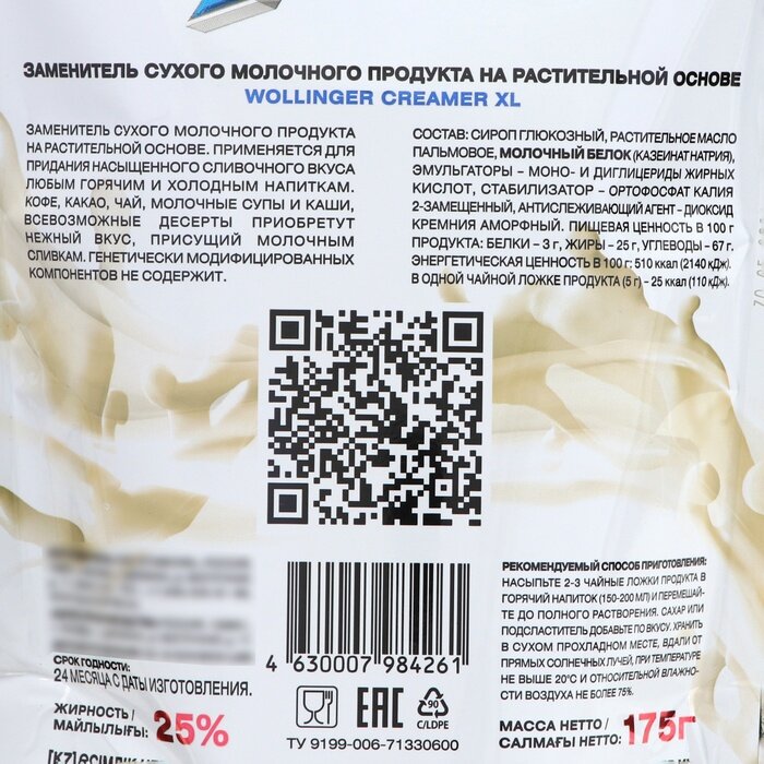 Wollinger Заменитель сухих сливок, XL, 175 г - 1 шт. интересное: