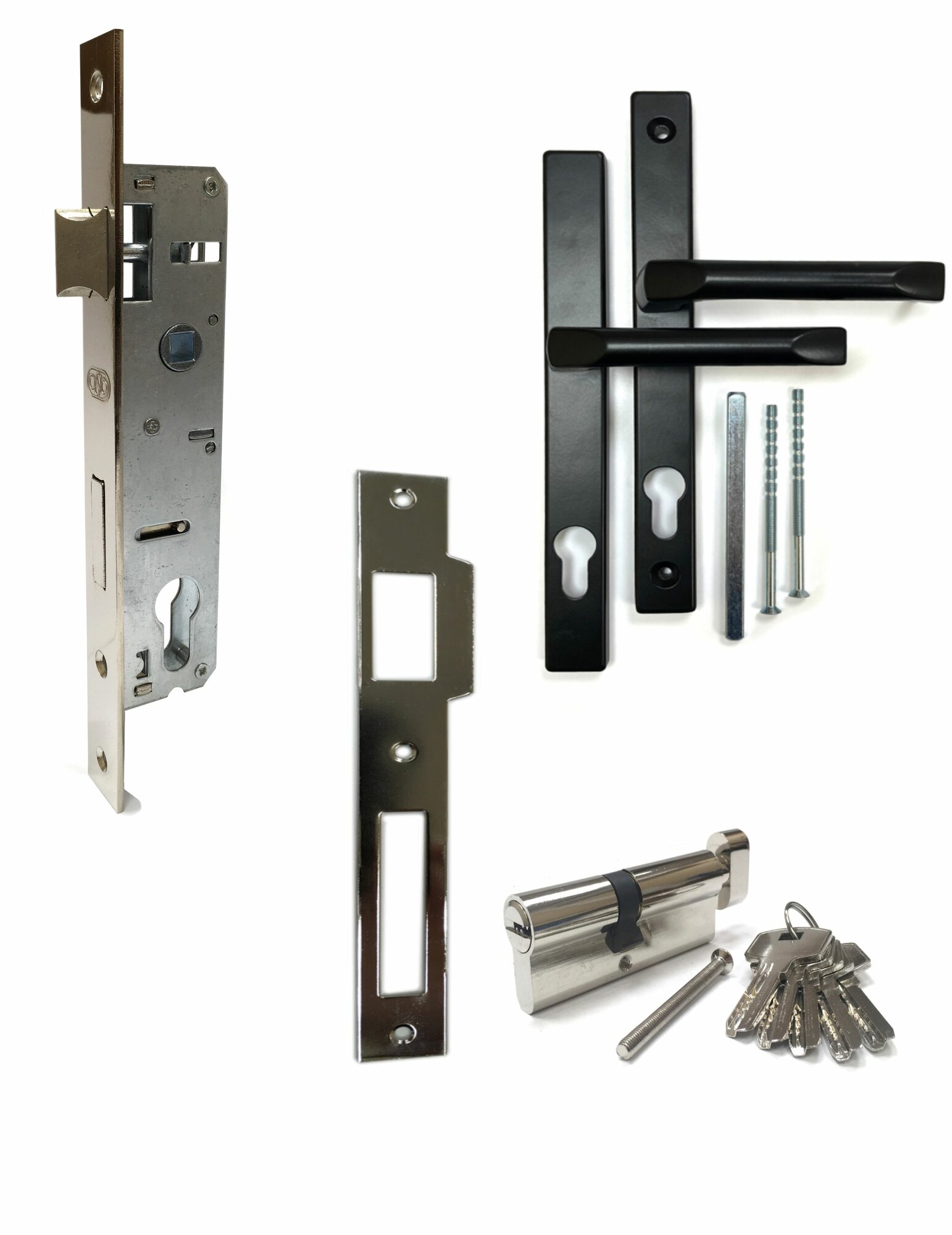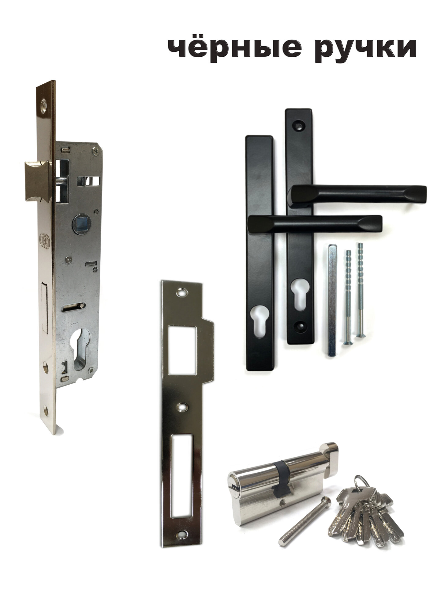 Купить Врезной замок, комплект с ручками и цилиндром (Черный) для дверей и калиток