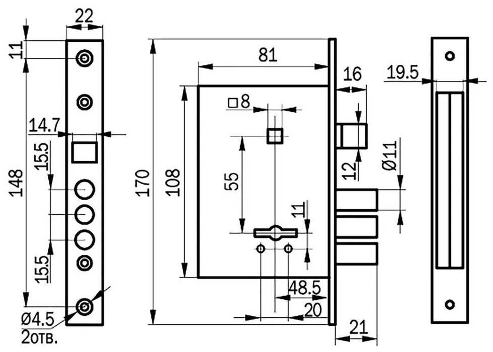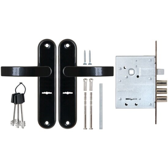 Замок врезной сувальдный с защёлкой в комплекте с ручкой Сам ЗВ9-6/13 (черный глянец), 3 кл. /77305/ интересное: