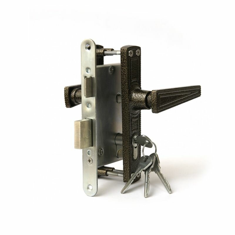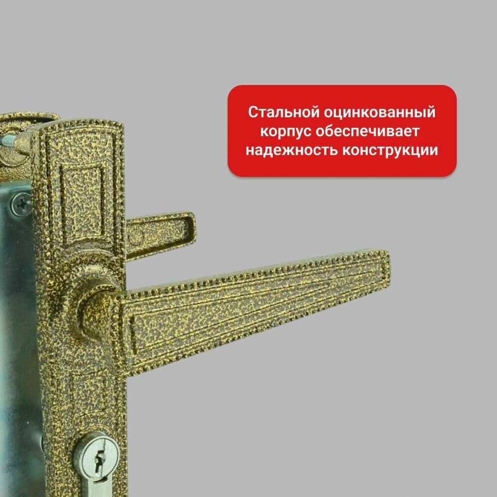 Замок врезной цилиндровый с защёлкой в комплекте с ручкой Зенит (замки) зенит ЗВ4-3.01 (бронза), 4 кл.