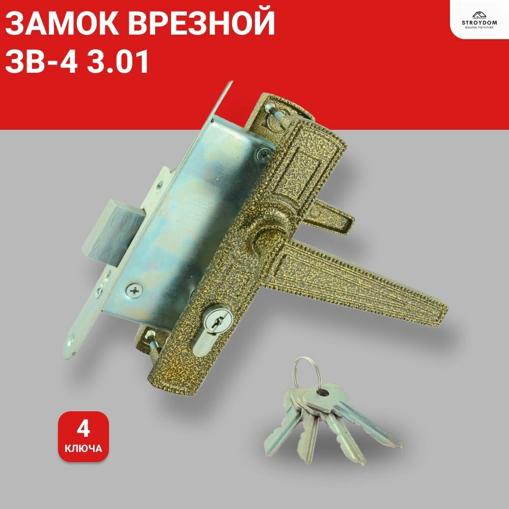 Замок врезной Зенит, ЗВ4-3.01, 00-00000449, ручка в комплект, цилиндровый, золот