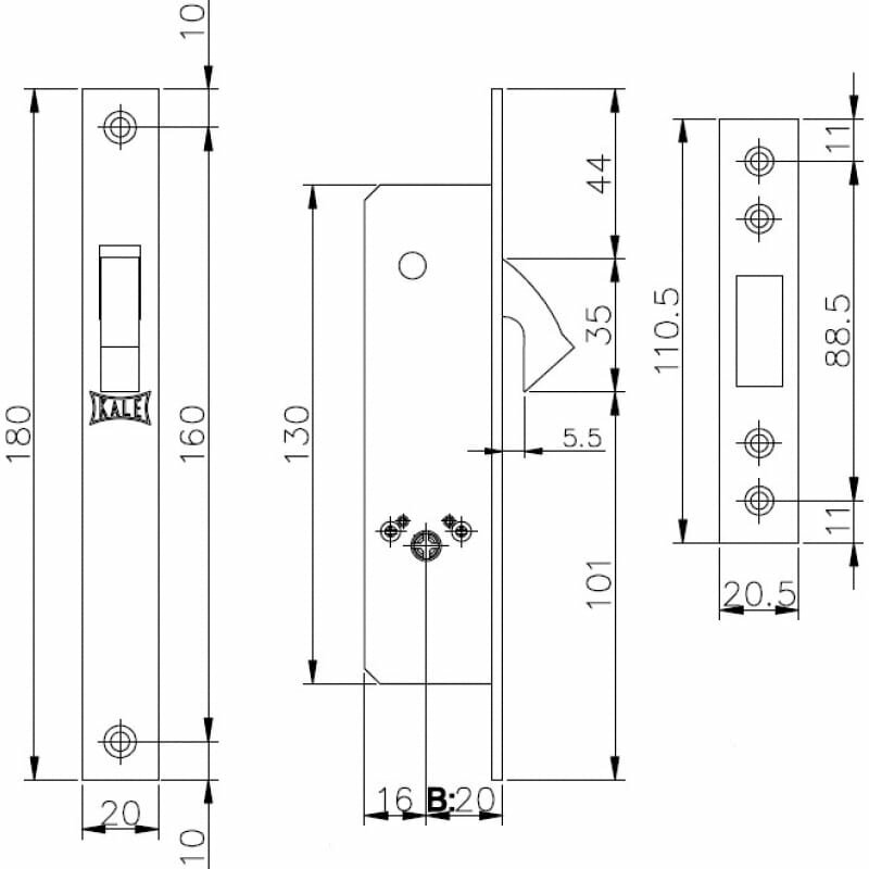 KALE KILIT Замок врезной цилиндровый узкопрофильный 201 (20 mm) (никель), 3 кл. 1093