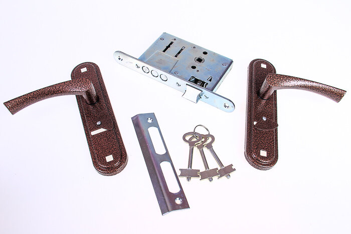 Замок врезной Zenit (Зенит) сувальдный с защёлкой в комплекте с ручкой ЗВ9-4-2 (медь)