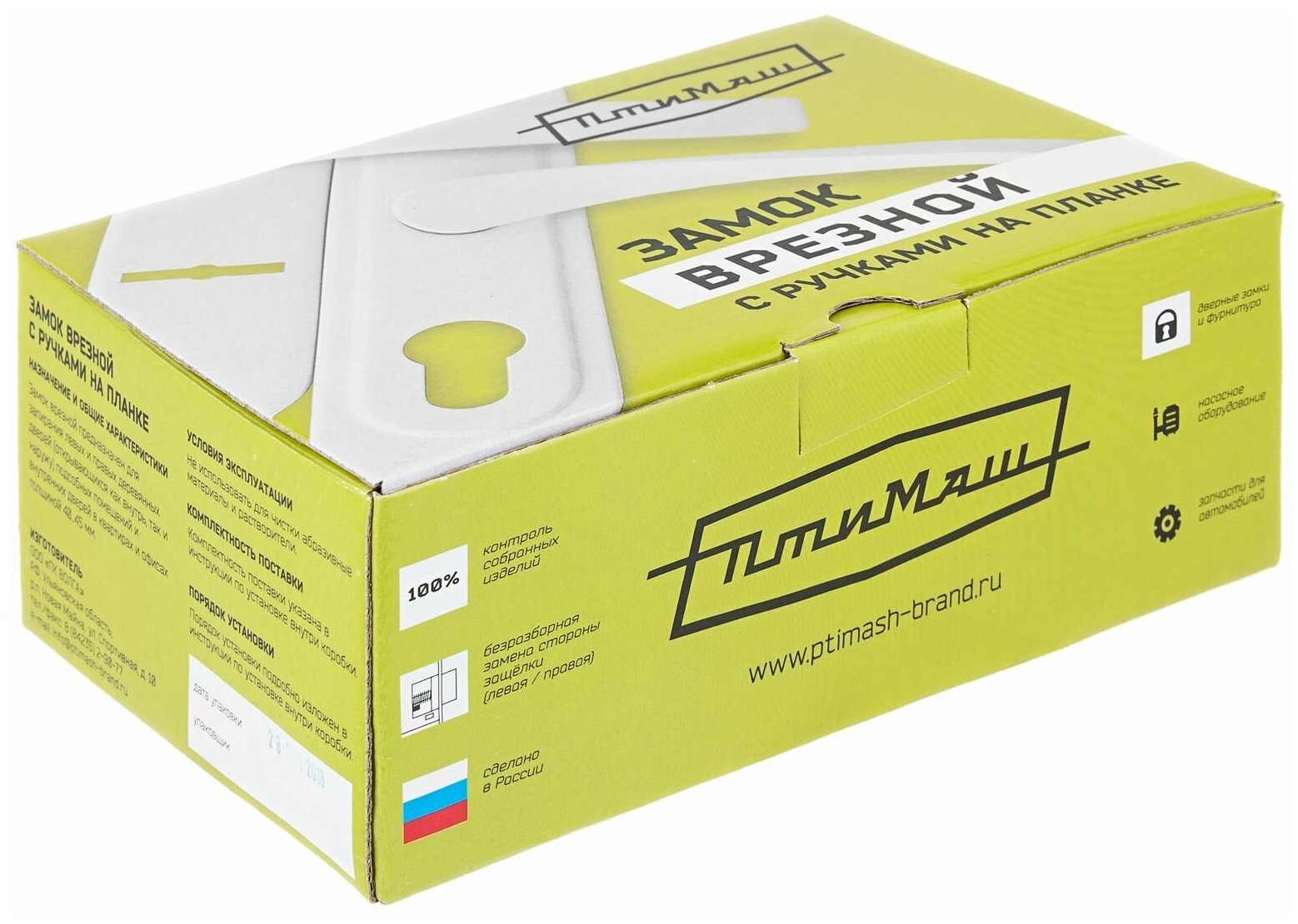 Врезной замок с ручками для деревянных дверей, расстояние 55 мм Птимаш ЗВ9-4.08 белый