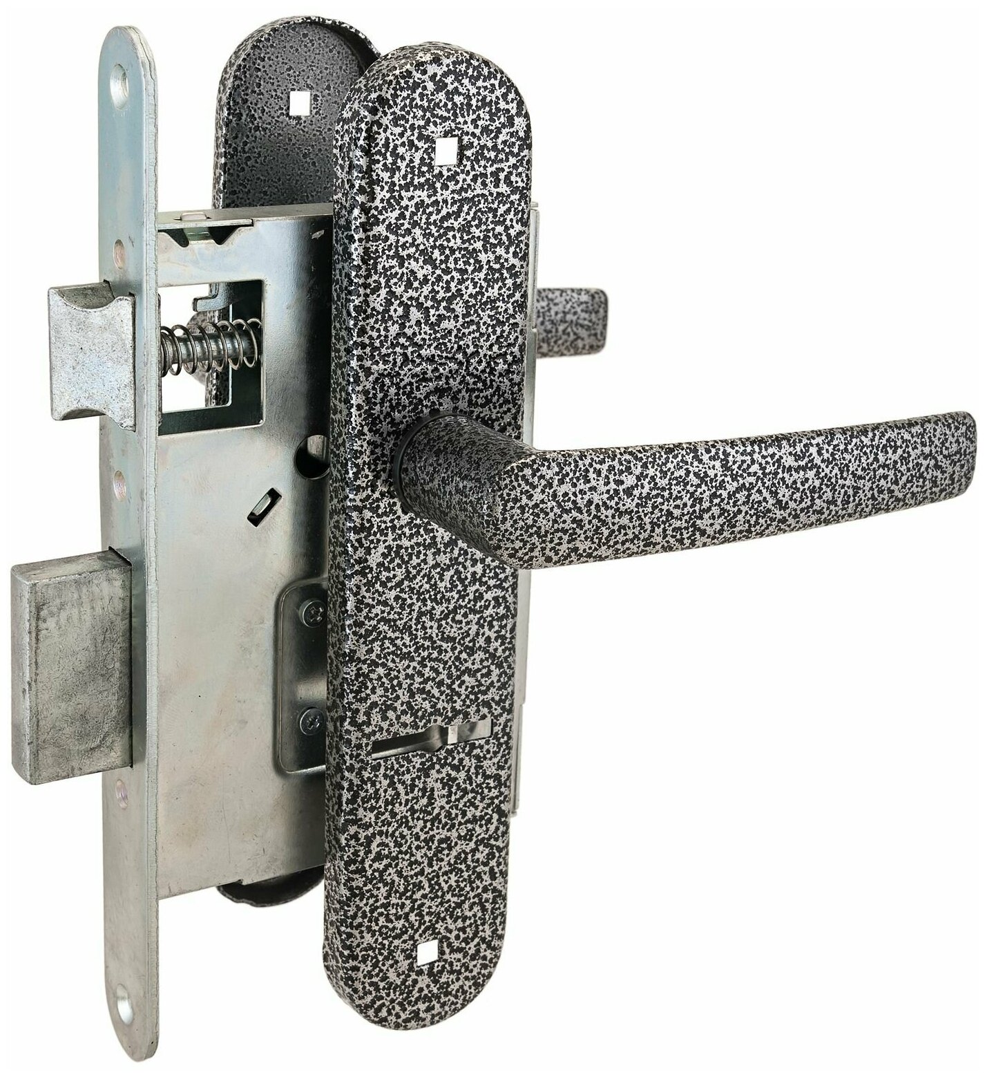 Врезной замок с ручками для деревянных дверей, расстояние 55 мм Птимаш ЗВ9-4.08 черный