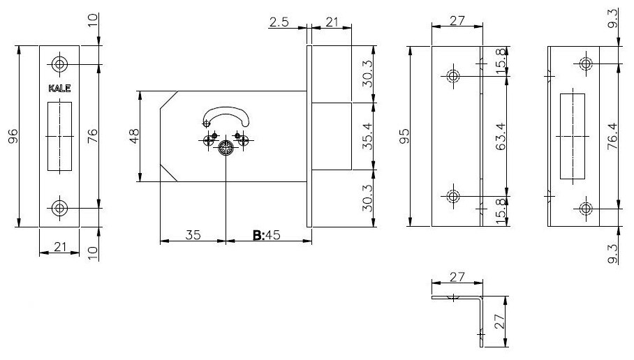 Замок врезной крестообразный Kale Kilit 156/F (45 mm), 3 кл. интересное: