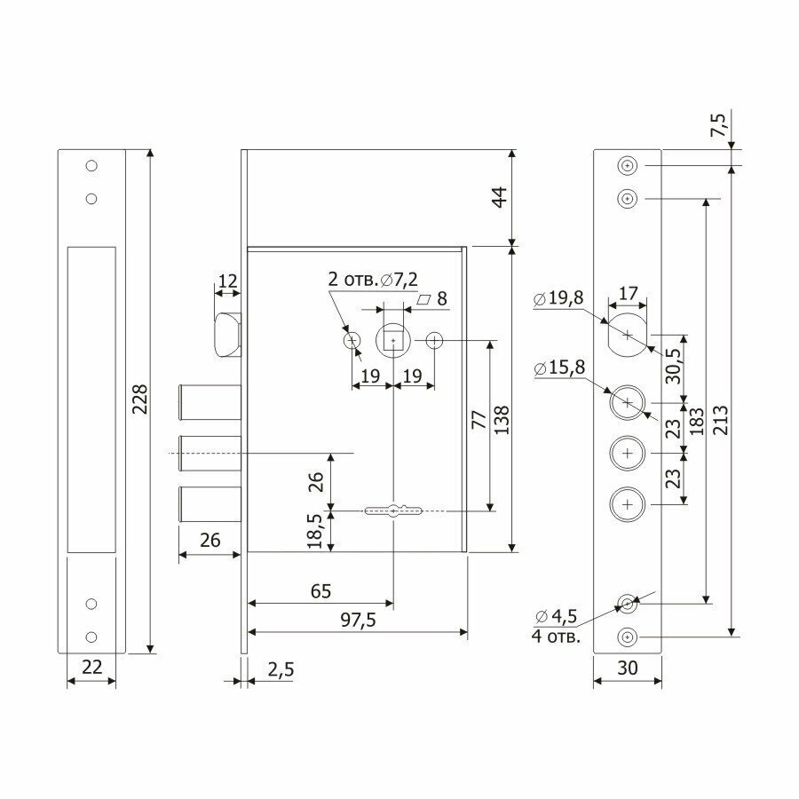 Замок врезной Гардиан-3011, 4 длин.ключа (ЗК.303Н-01)