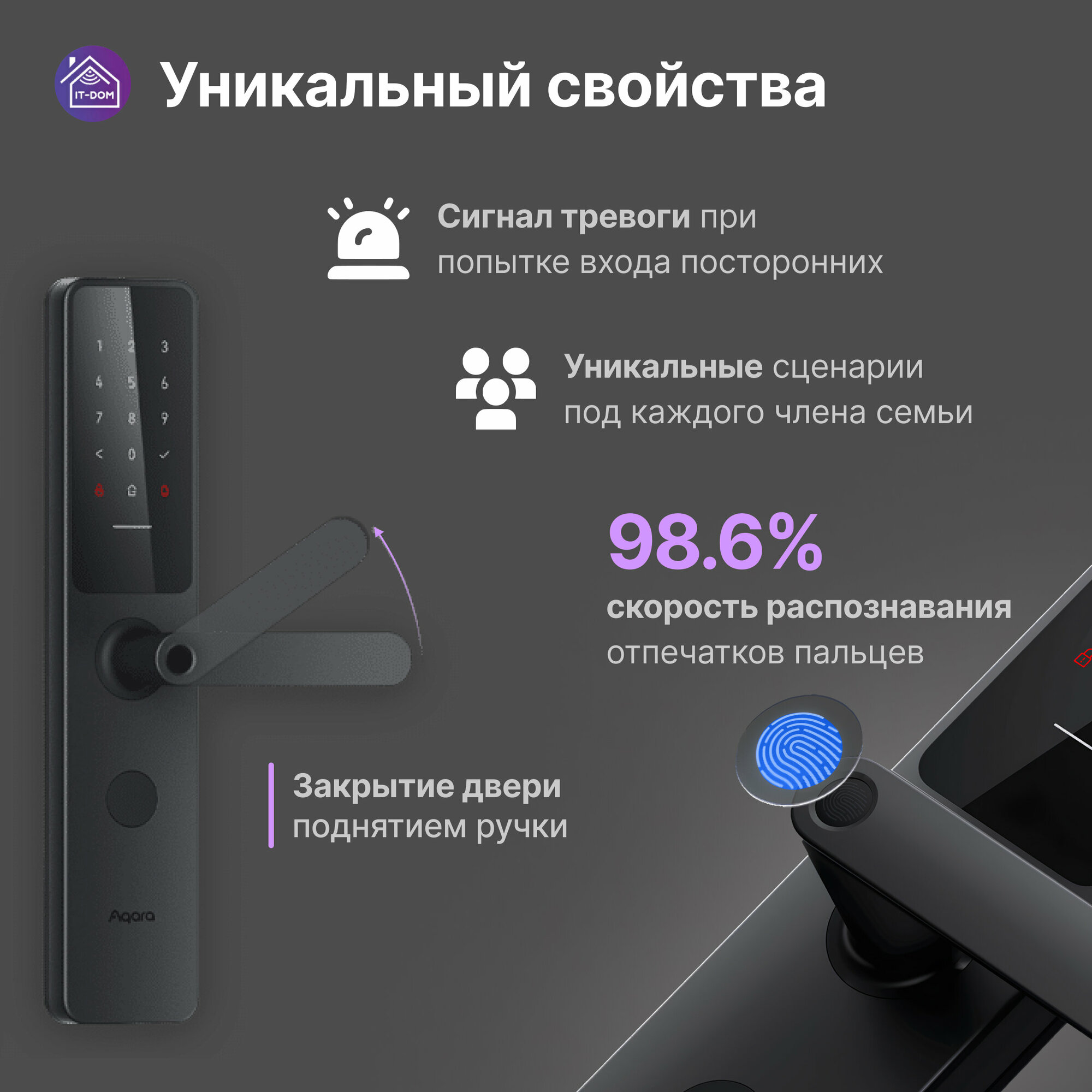 AQARA Умный дверной замок A100 zigbee edition, модель ZNMS02ES интересное: