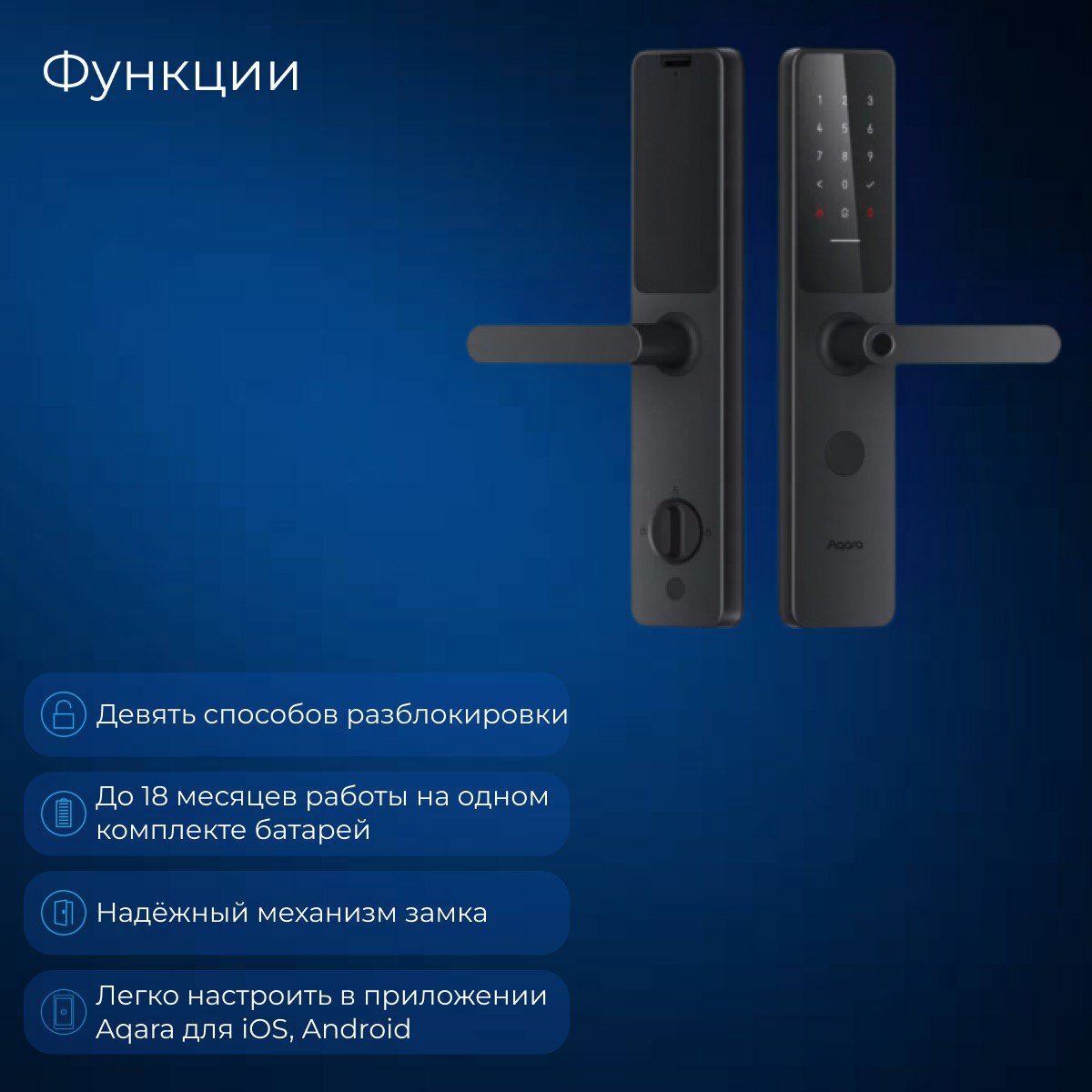 Умный дверной замок Aqara A100 ZNMS02ES, умный дом, Zigbee 3.0, Bluetooth 5.0, черный