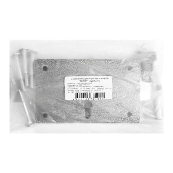 | Подробная комплектация | Корпус замка-1 шт., механизм цилиндровый с комплектом ключей 5 шт.- 1 шт., накладка наружная- 1 шт., болт М8- 4 шт., гайка М8- 4 шт., внутренняя крышка замка - 1 шт., засов- 1 шт., винт для крепления цилиндра- 1 шт., винт для крепления крышки- 2 шт., инструкция- 1 шт., упаковка (пакет)- 1 шт. |