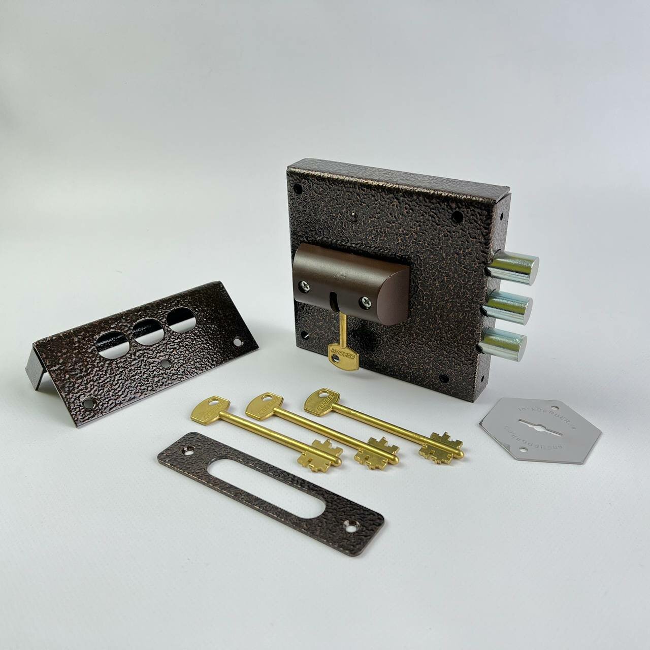 Комплект накладных замков под один ключ CERBER C1-П ЗНУ-П 114 (3 замка, 3 ключа 60 мм, полный комплект)
