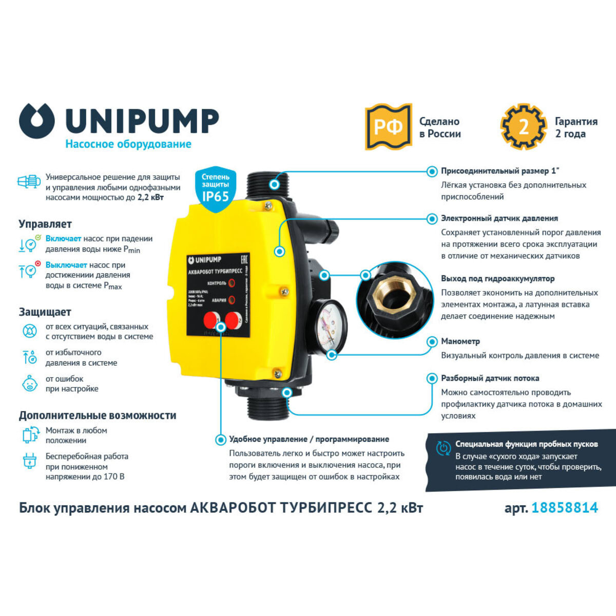 Блок автоматики UNIPUMP Акваробот Турби М2 (2.0-3.5 бар)