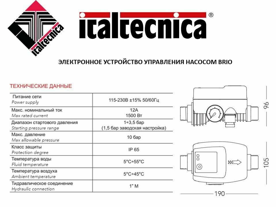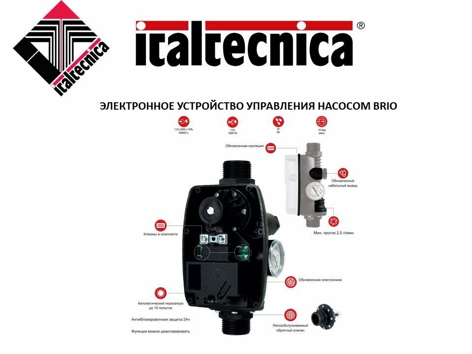 Электронное устройство управления насосом ITALTCNICA BRIO (1500Вт, 12А, 230В, без кабеля, Италия) интересное: