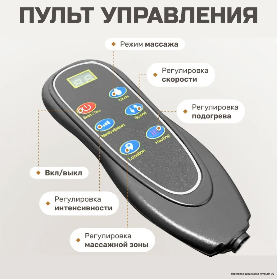 | Зона массажа | ноги / плечи / поясница / спина |