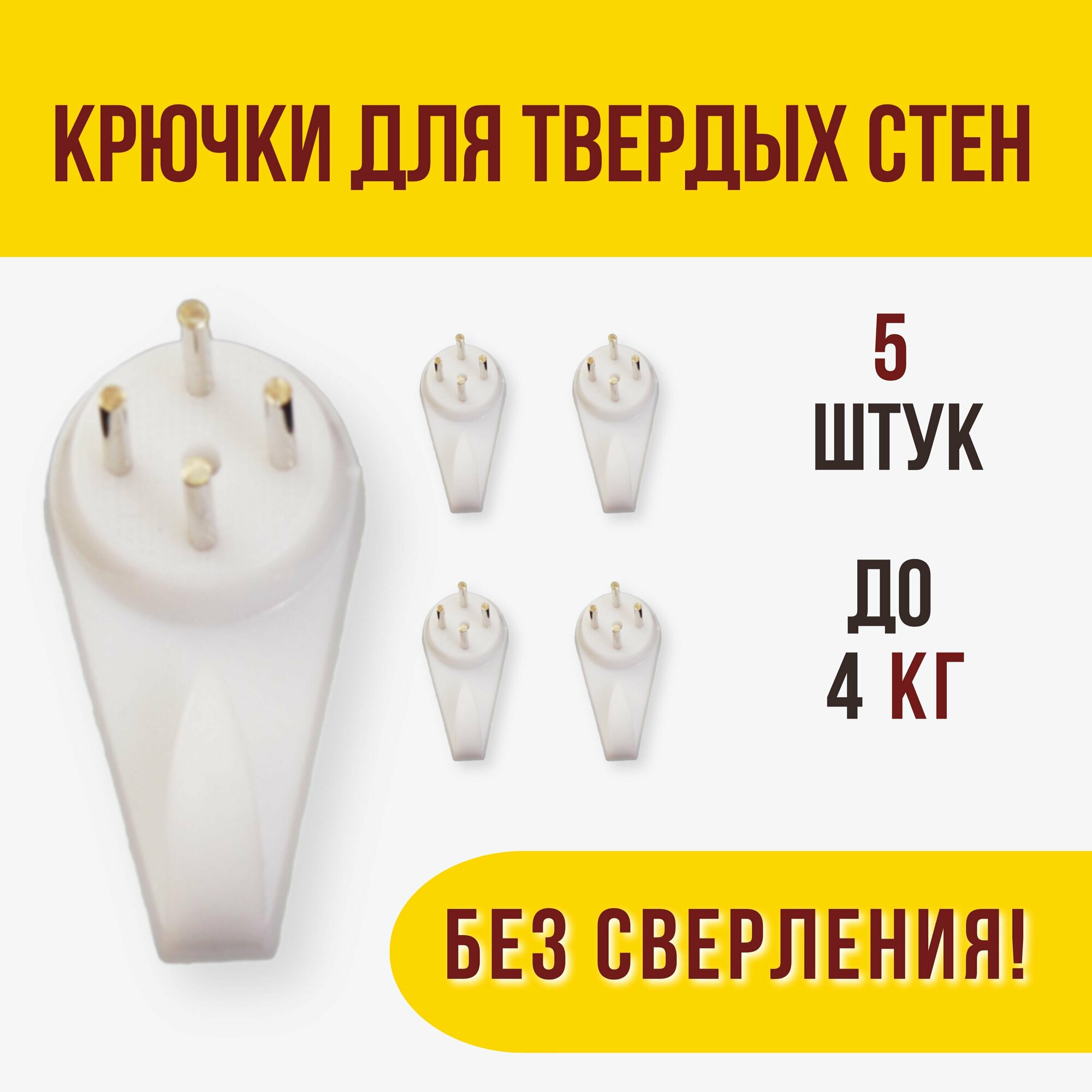 Подвес для картин / крючок-крепление для твердых стен / без сверления, большой до 4 кг, уп. 5 шт интересное: