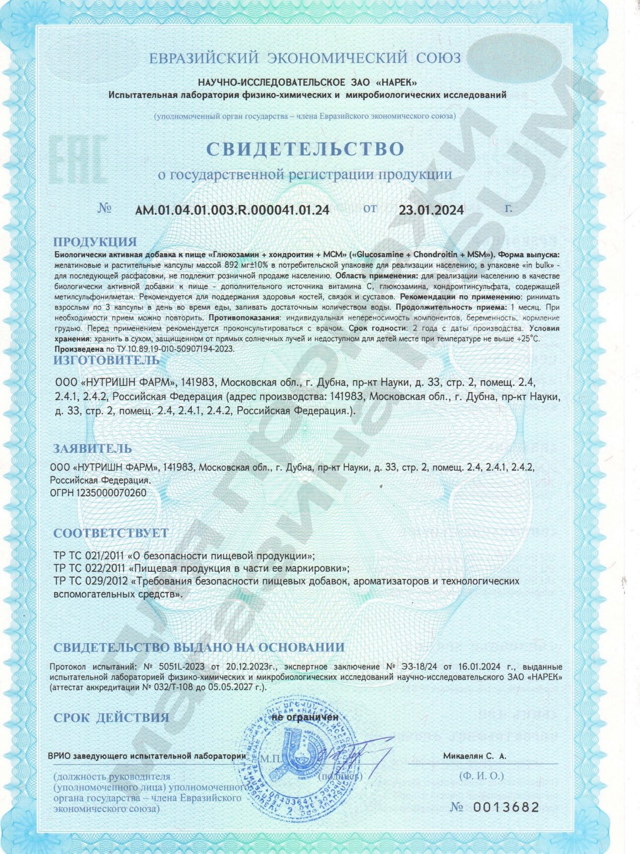 | Основной ингредиент | MCM / глюкозамин / хондроитин |