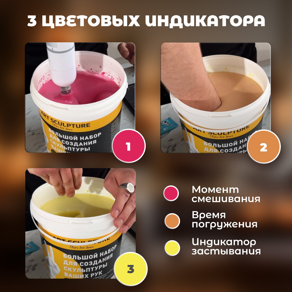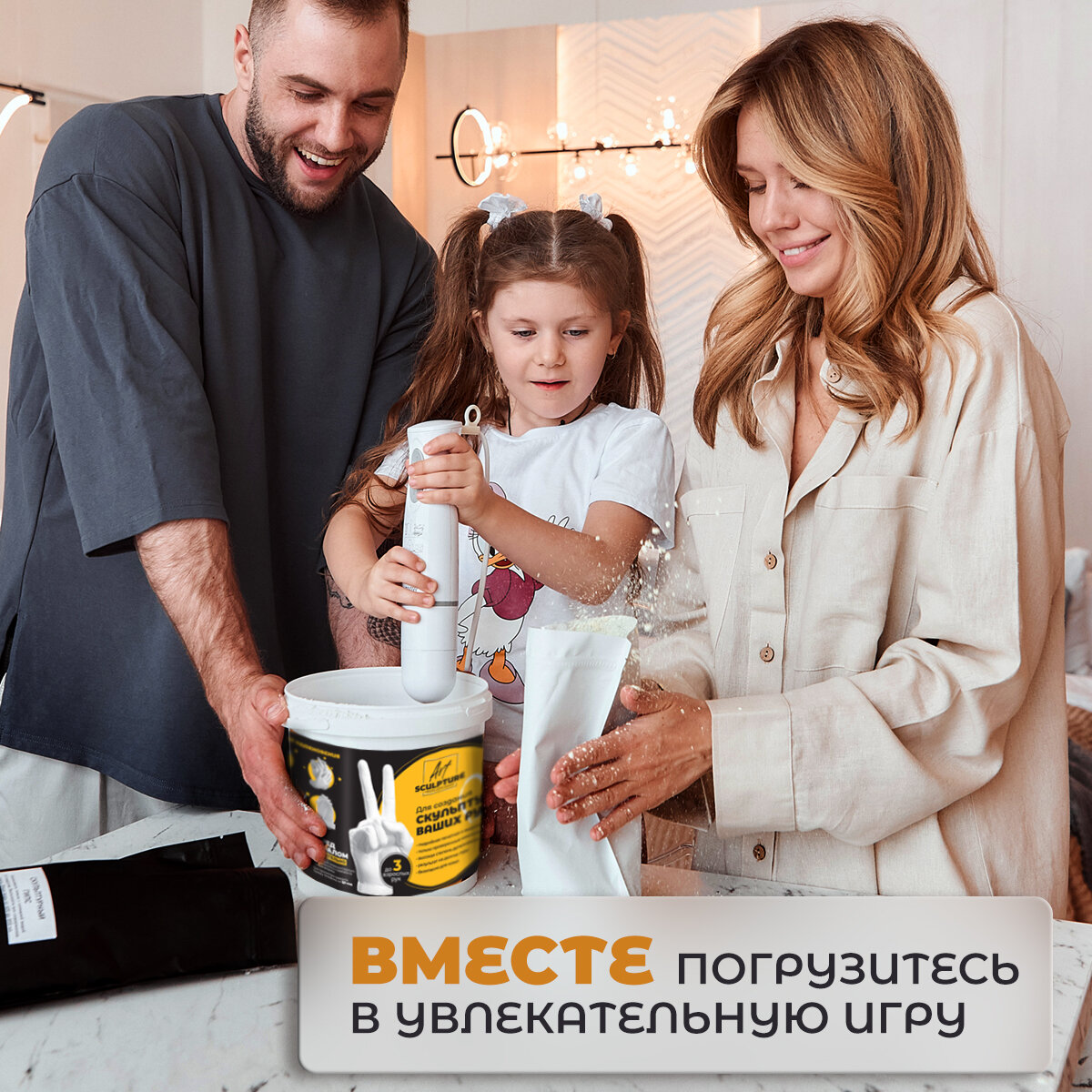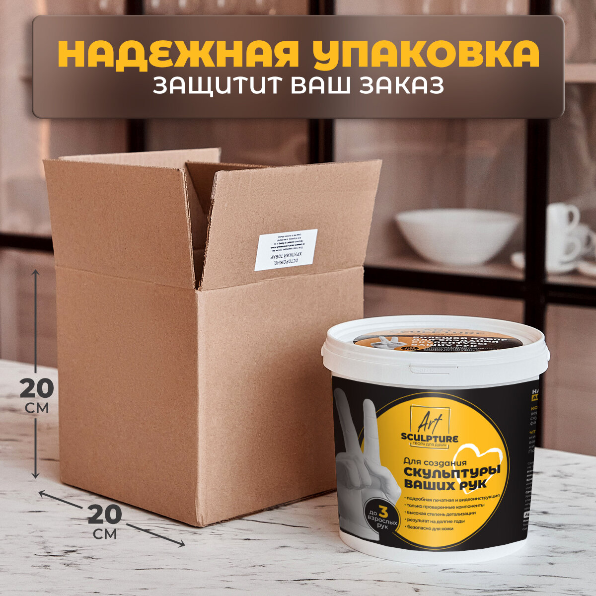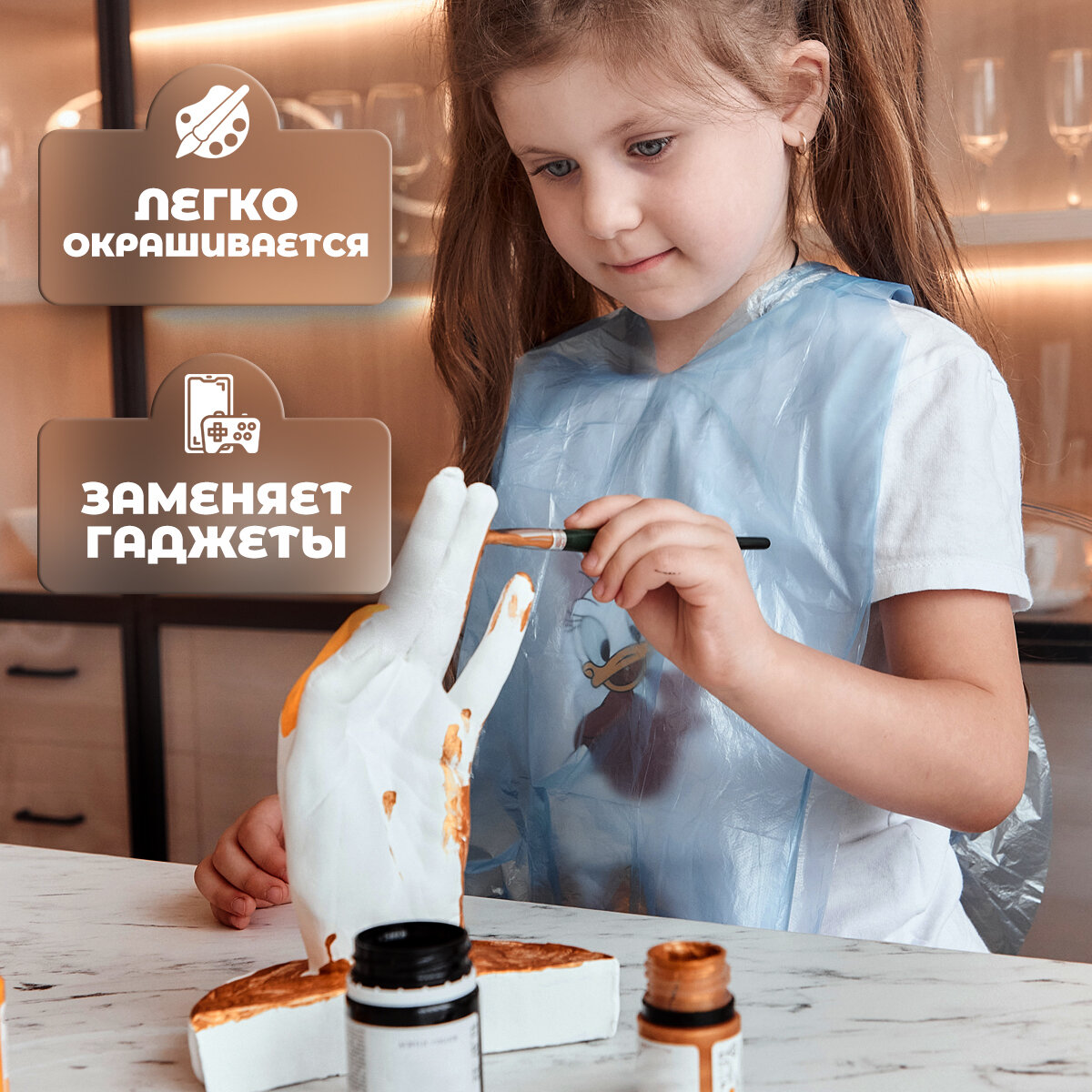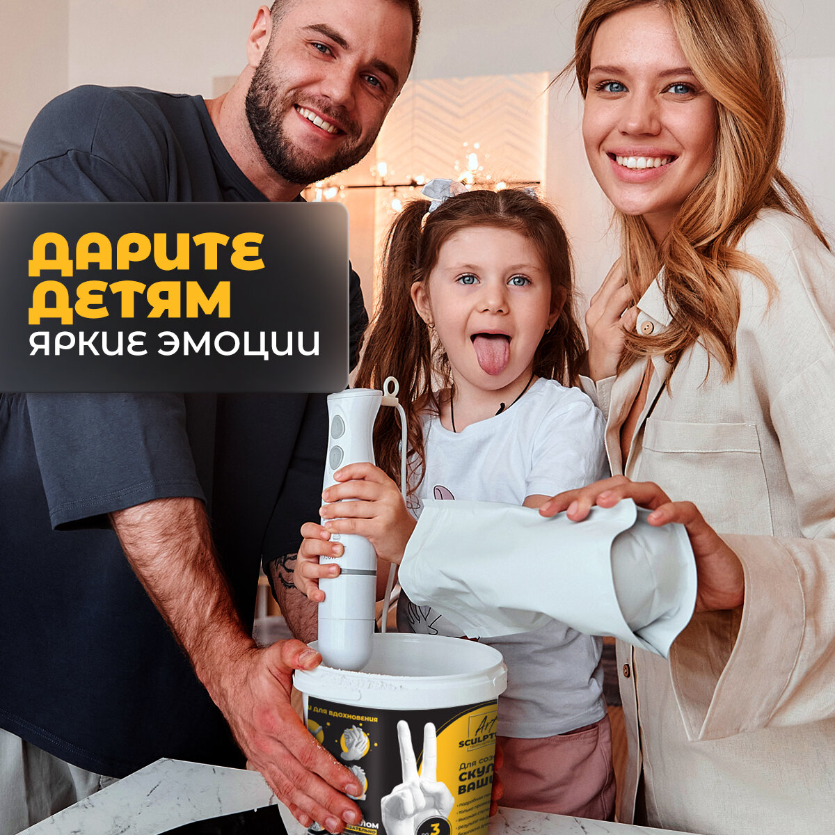 | Комплектация | слепочная масса, гипс для творчества, деревянные стеки, пластиковое ведро, одноразовый фартук, подробная инструкция |