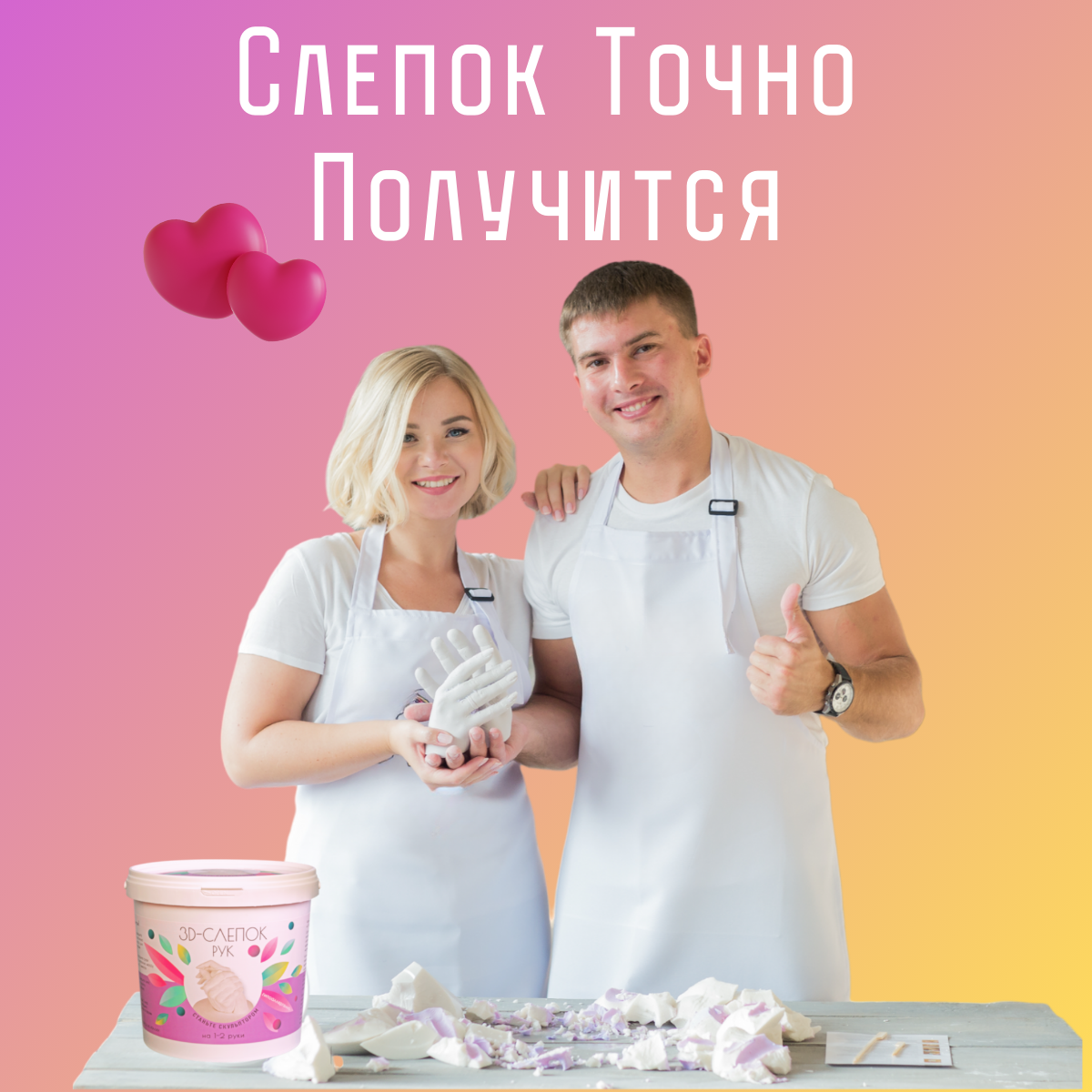 3D Слепок рук для двоих Подарочный набор Руки из гипса
