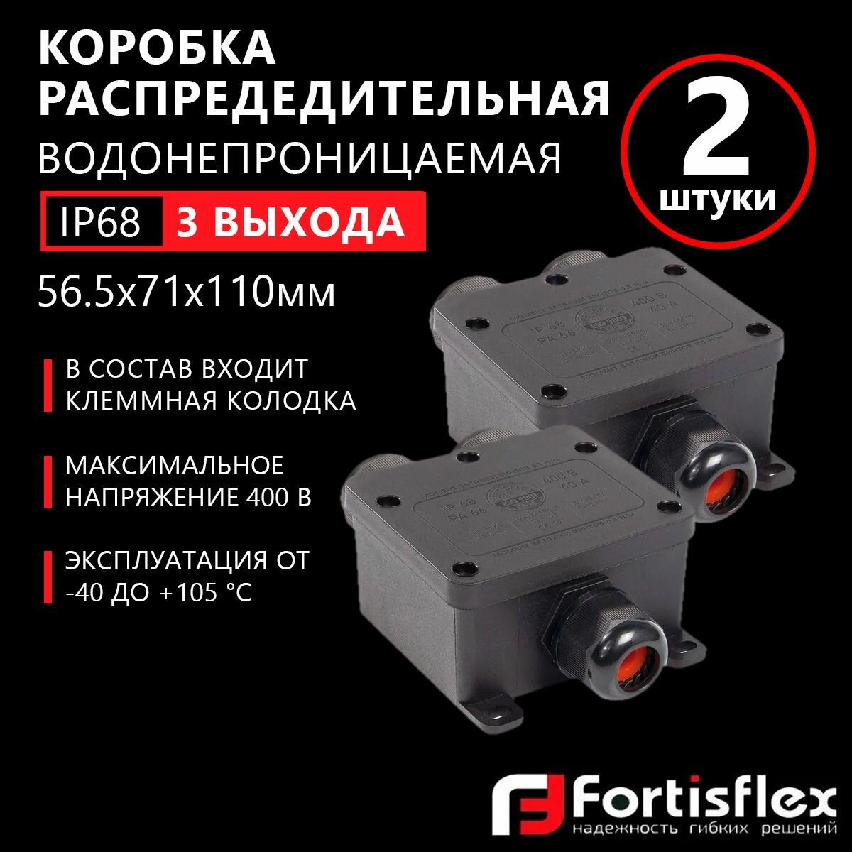 Коробка распределительная водонепроницаемая (3 выхода) Fortisflex MG Box S-3, IP68, 2 шт
