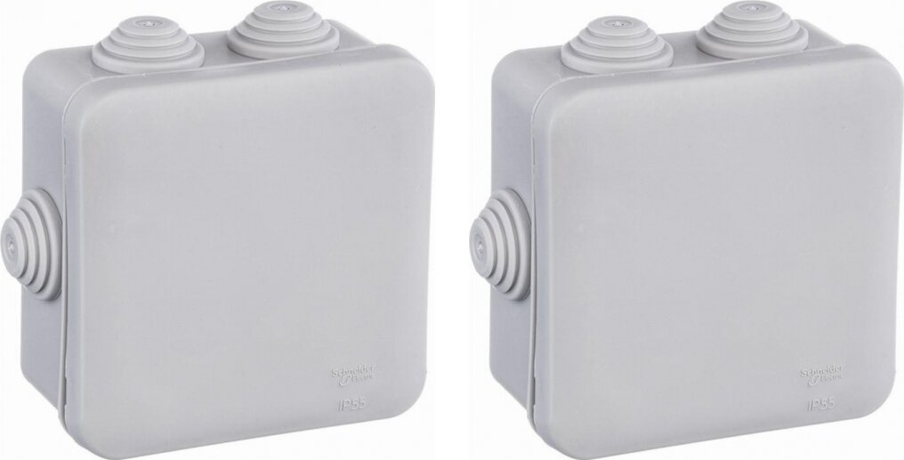 Купить Коробка распределительная Schneider Electric 85x85x40 квадратная 6 вводов для открытого монтажа IP55 (комплект из 2 шт.)