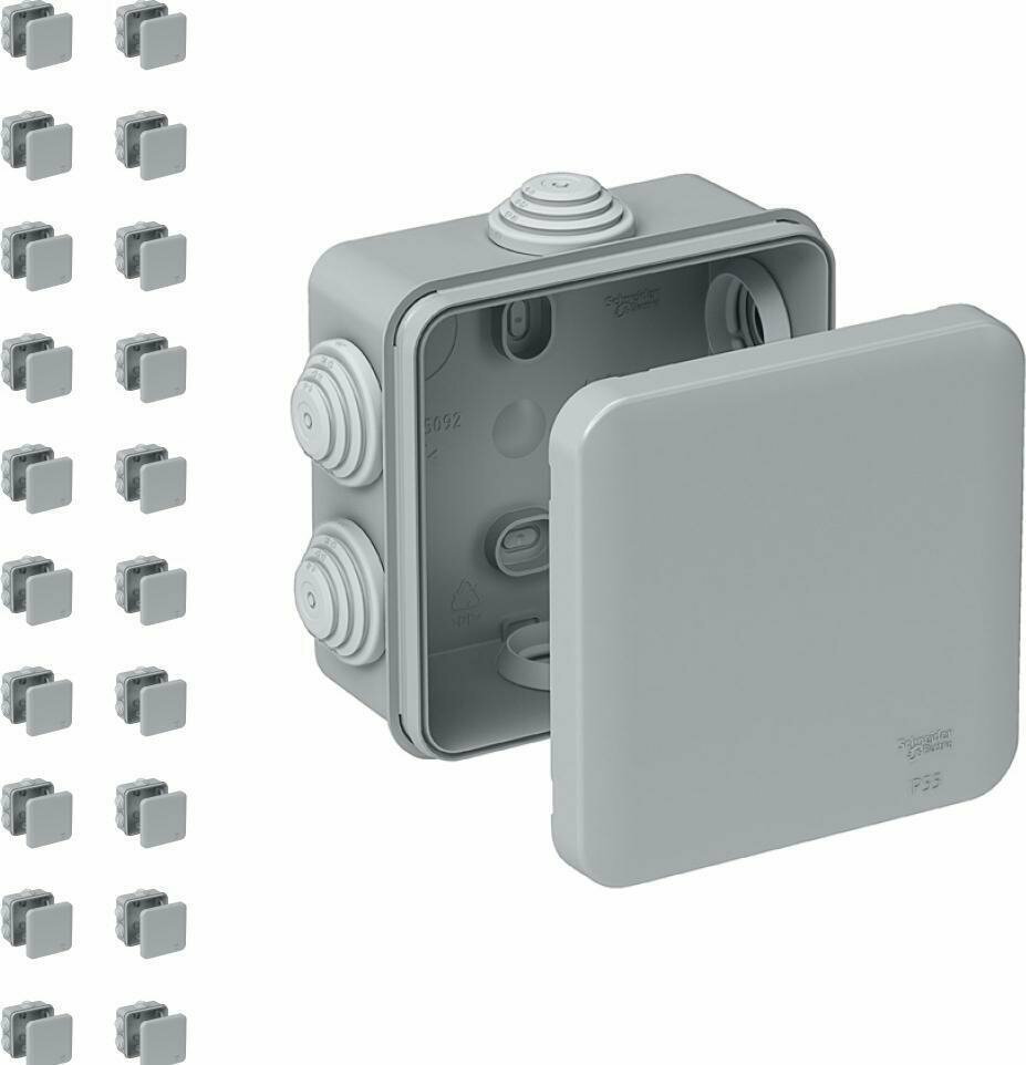 Купить Коробка распределительная Schneider Electric 85x85x40 квадратная 6 вводов для открытого монтажа IP55 (комплект из 20 шт)