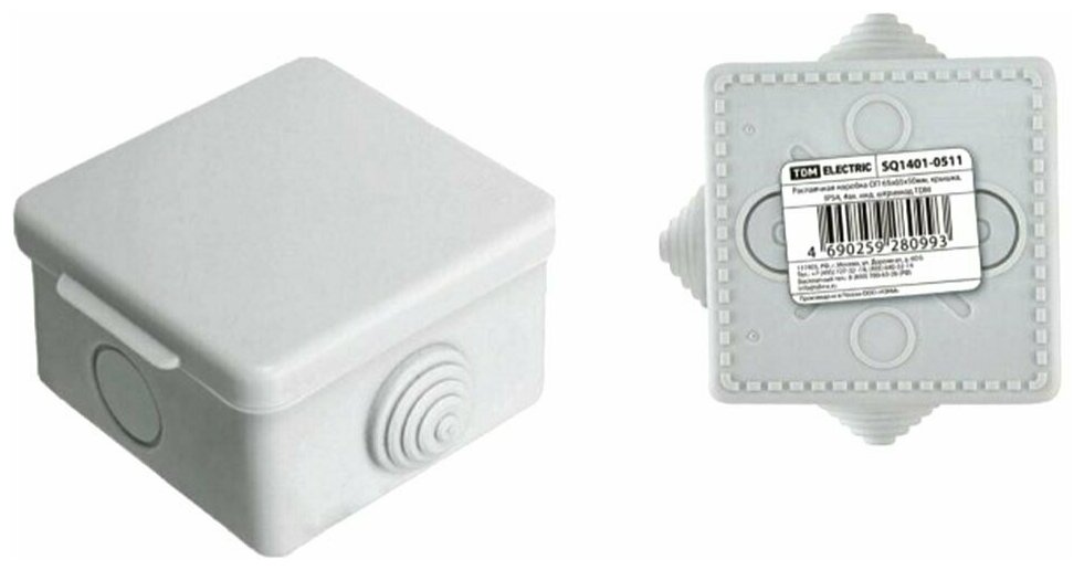 TDM рэмз коробка распред. 65х65х50 мм ОУ с крышкой серый 4 входа инд. штрих (120) IP54 SQ1401-0511 (арт. 554354) интересное: