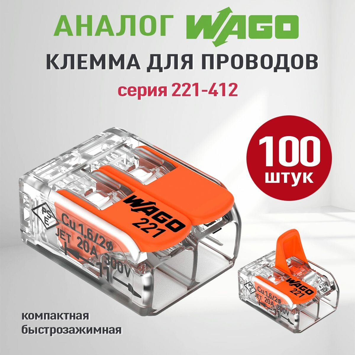 Купить Соединительные клеммы Wago (Аналог Wago) для проводов, ваги 221-412, 100шт