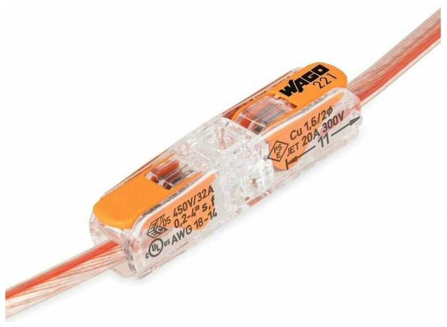 Соединитель WAGO для сращивания с рычагом 221-2411 (60шт упак)