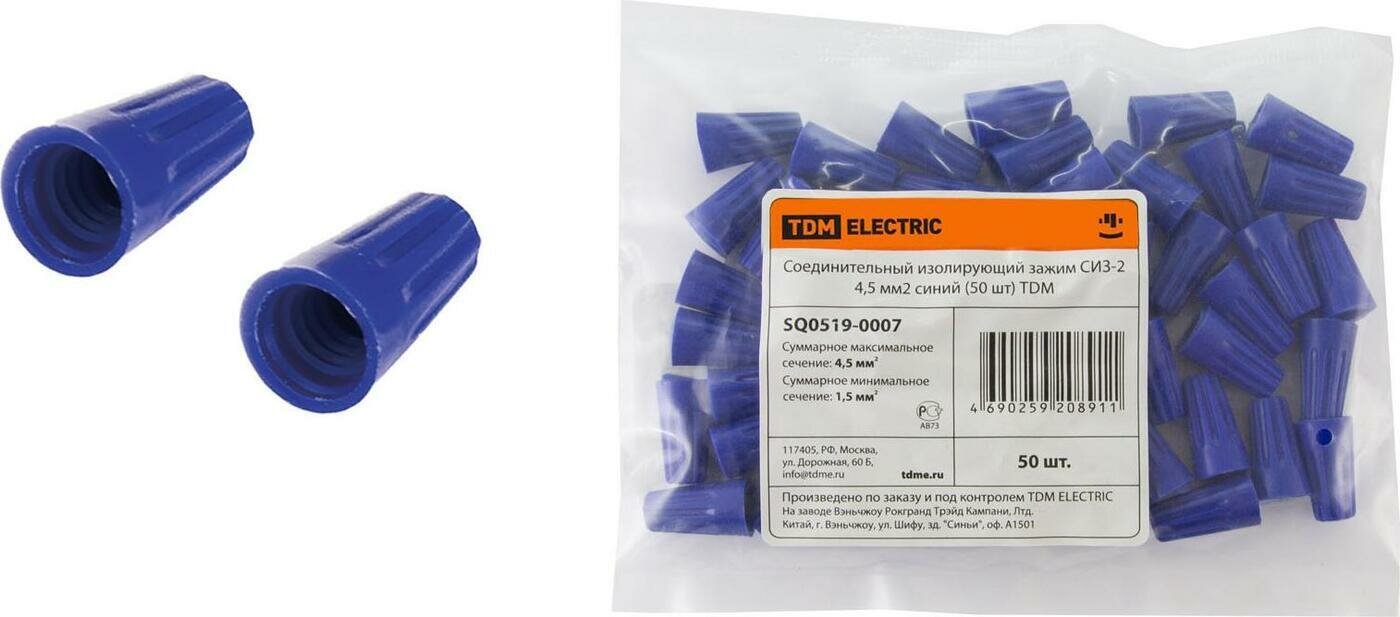 Соединительный изолирующий зажим СИЗ-2 4,5 мм2 синий (50 шт) TDM