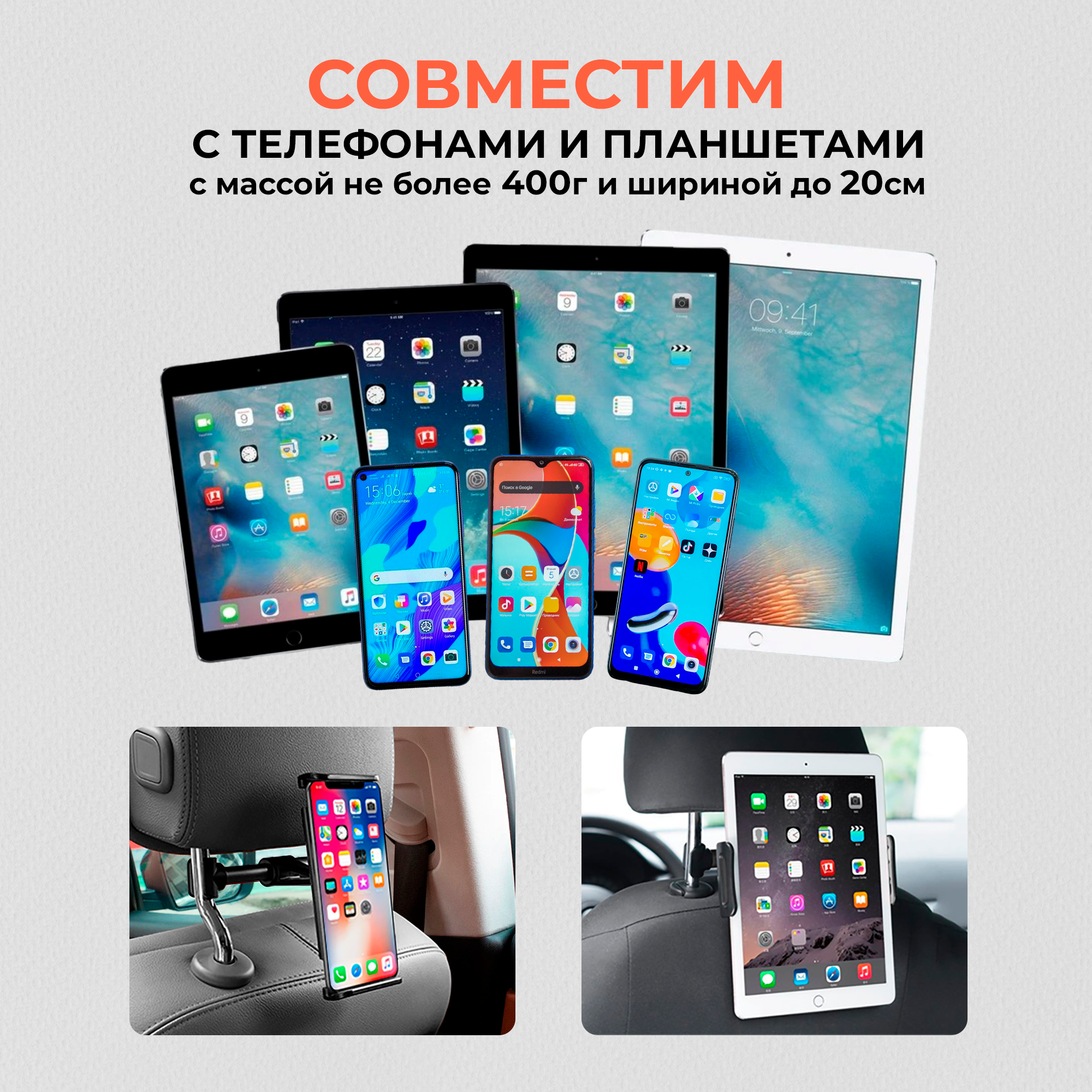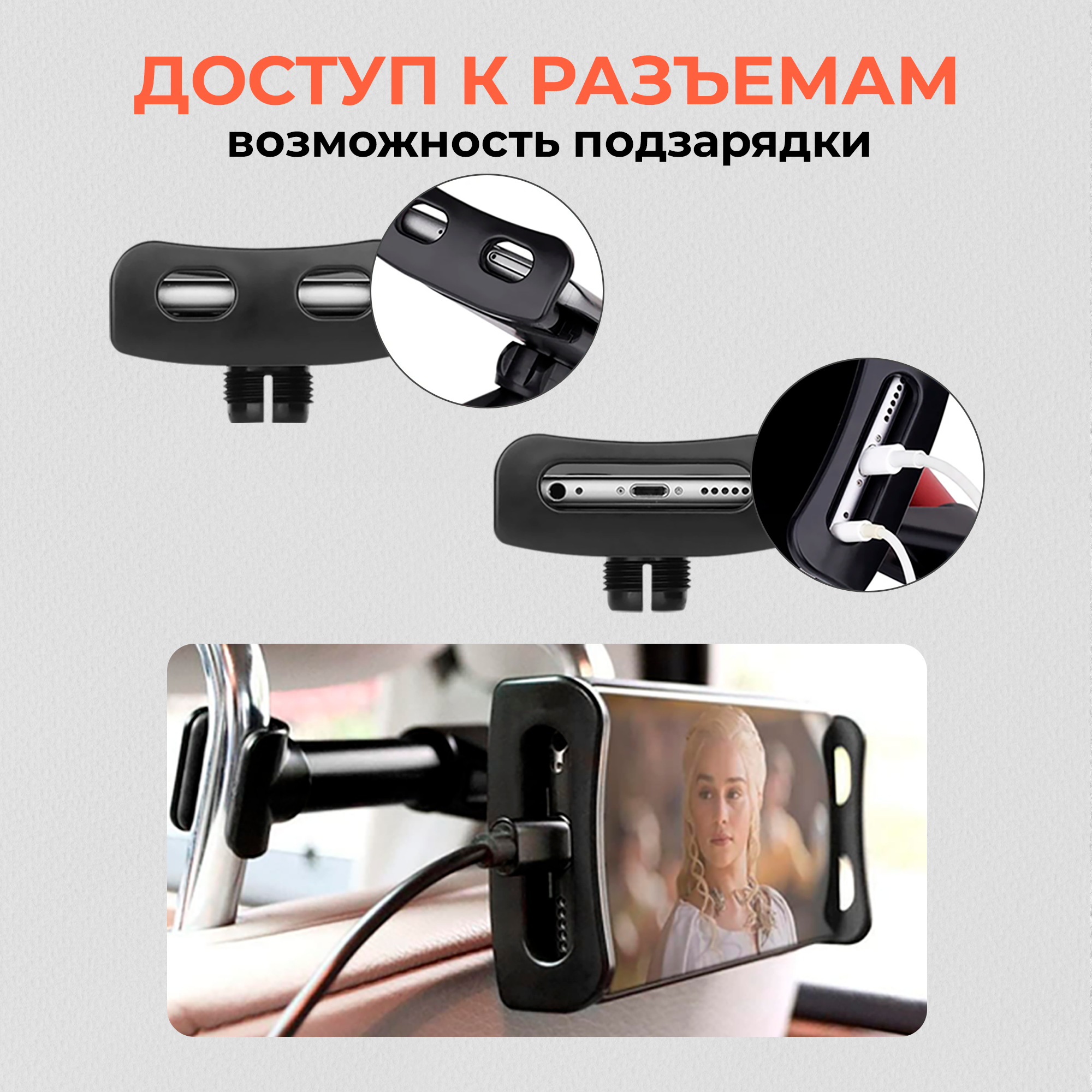 Держатель для телефона на подголовник, черный, поворот на 360 // подставка для планшета, держатель в автомобиль