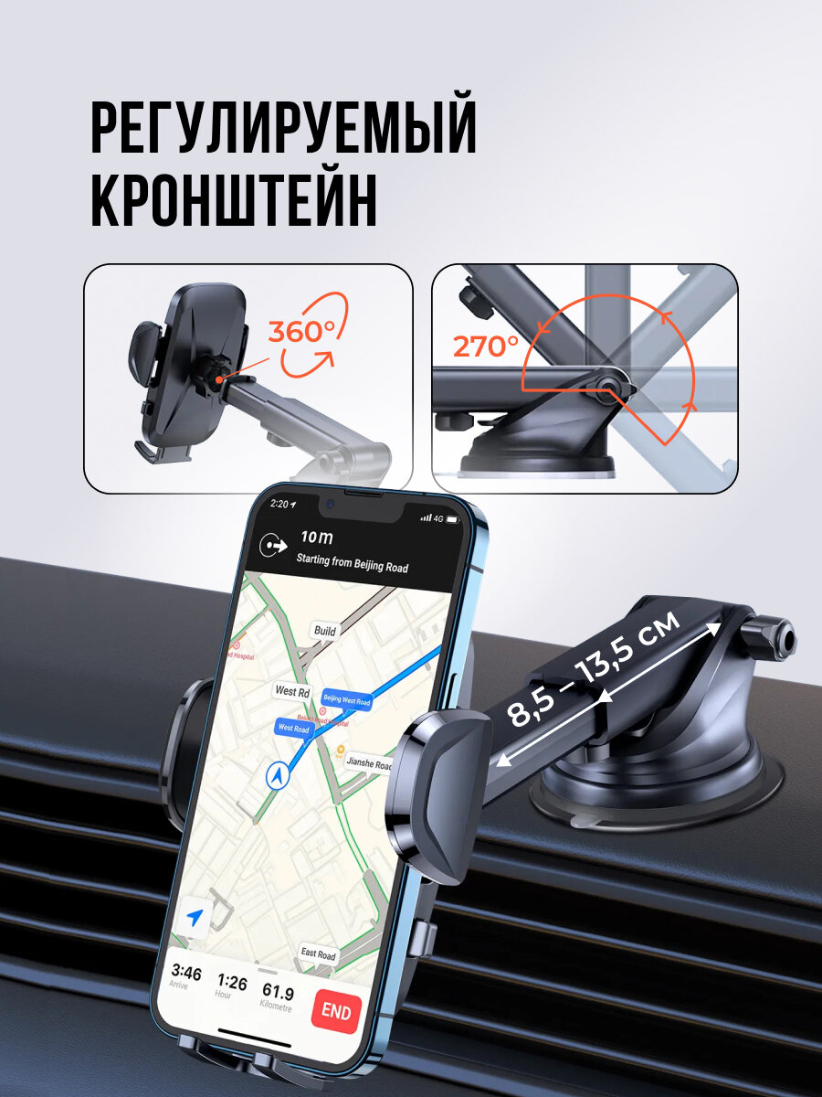 Держатель для телефона TOPK D36-X на присоске в машину интересное: