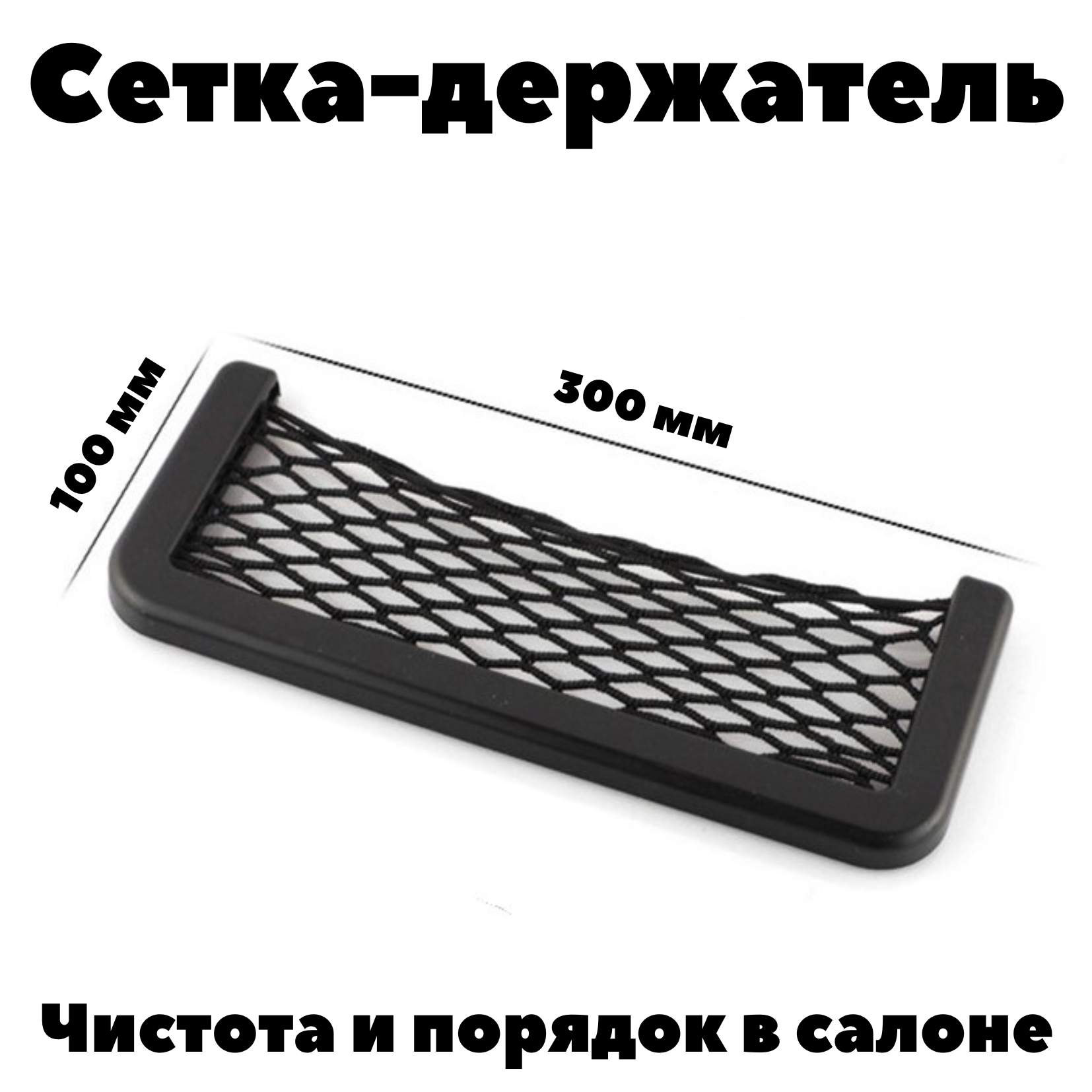 Сетка-держатель для авто 30х10 см на приборную панель/центральный тоннель/универсальный