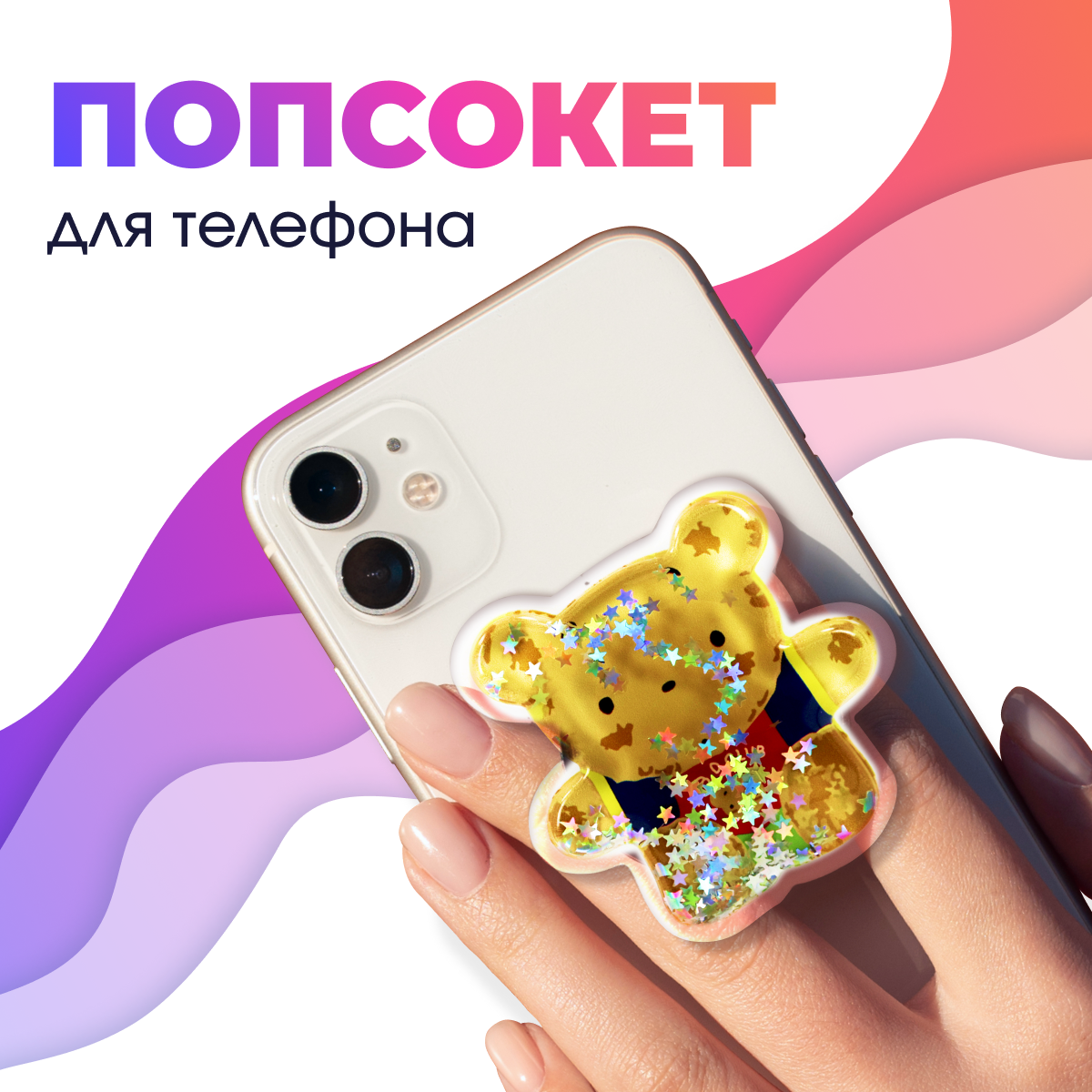 Держатель для телефона попсокет / Подставка для смартфона Apple IPhone и Android / Кольцо popsocket / Аксессуар для Айфон и Андройд (Bear)