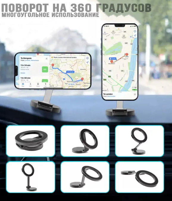 Автомобильный магнитный усиленный держатель для телефона 360 градусов для Android/iPhone 12/13/14/15/ Кронштейн с шарнирной площадкой интересное: