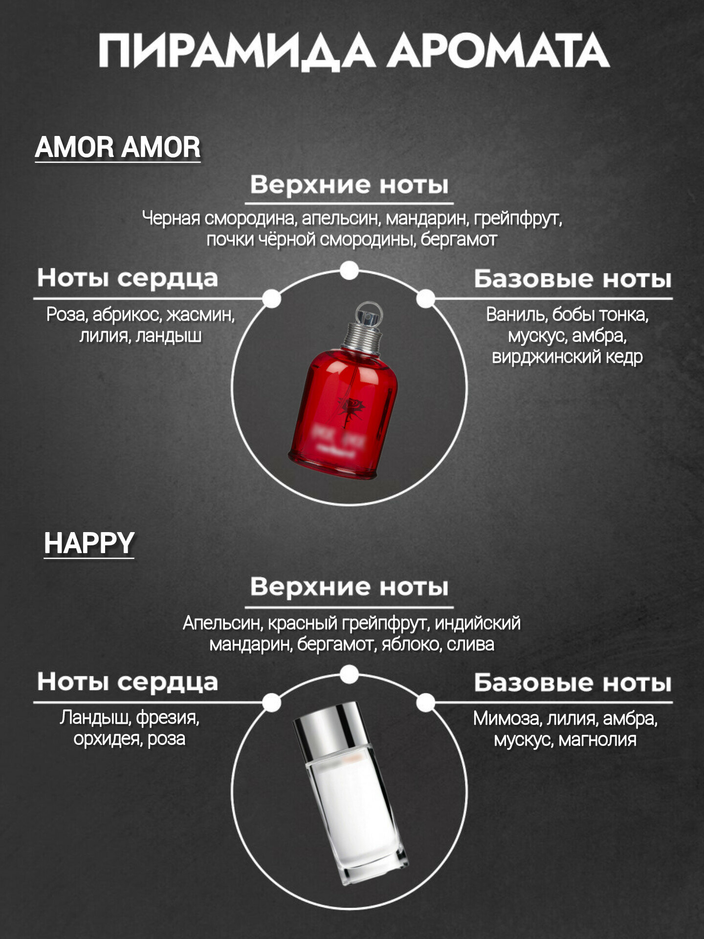 | Семейство | восточные / гурманские / древесные / древесные пряные / кожаные / мускусные / сладкие / фруктовые / цветочные / цитрусовые / шипровые |