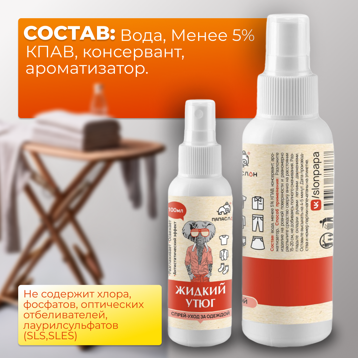 Рефрешер Папа Слон 100 мл, разглаживающий спрей для одежды интересное: