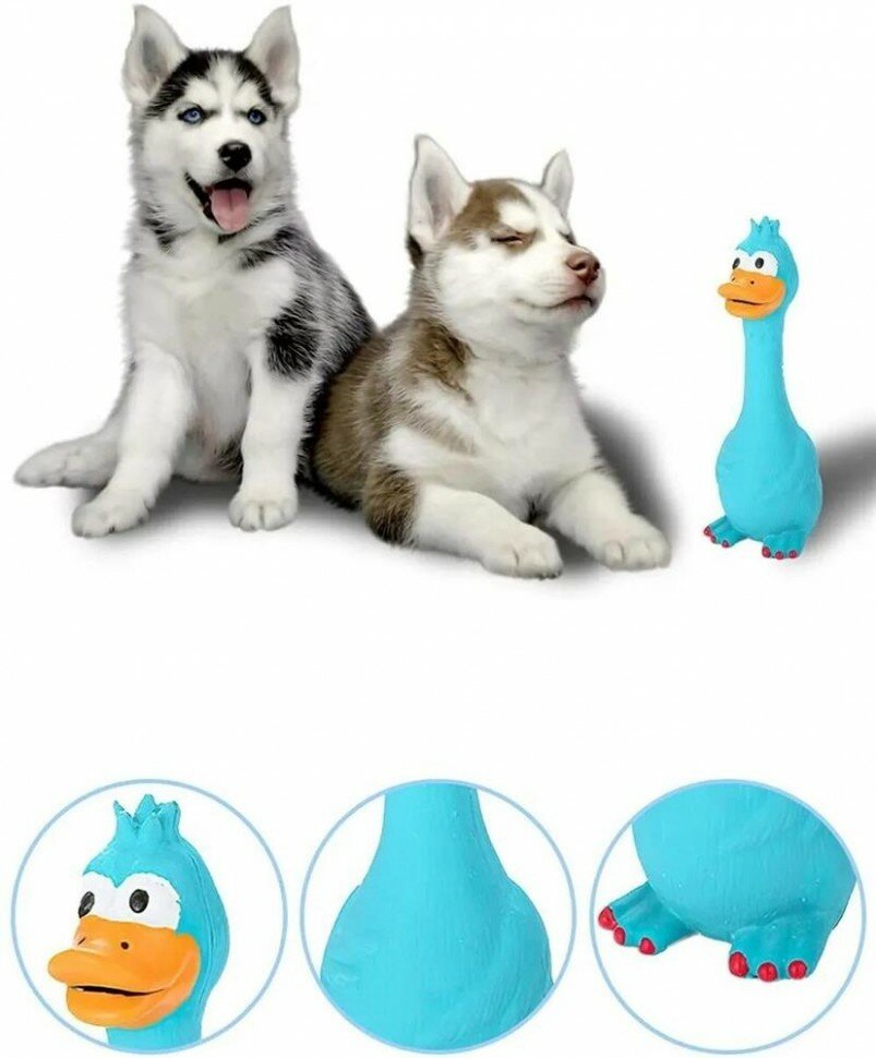 Игрушки для собак/Игрушка пищалка для собак/ Курица с пищалкой, 20х7х6 см, голубая