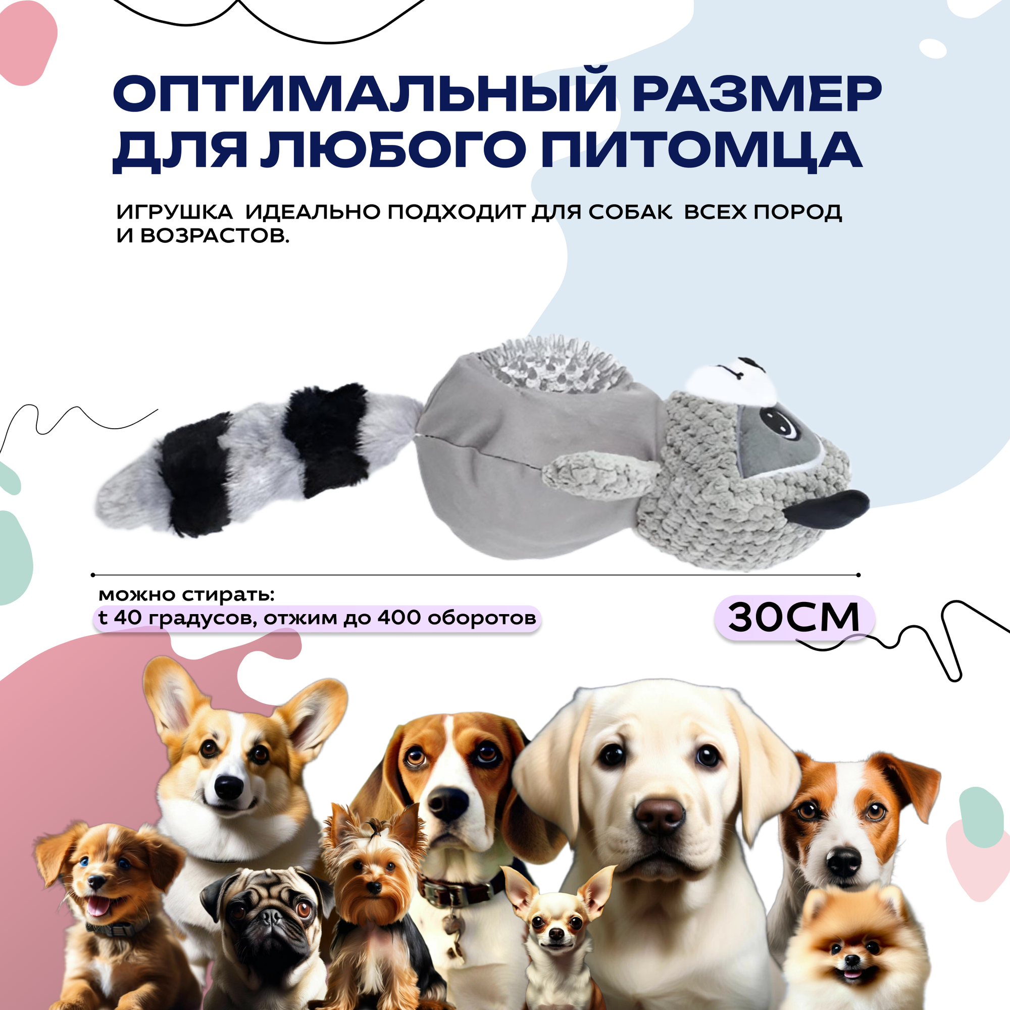 Мягкая развивающая игрушка для собак "Енот с мячом-пищалкой", для любых пород интересное: