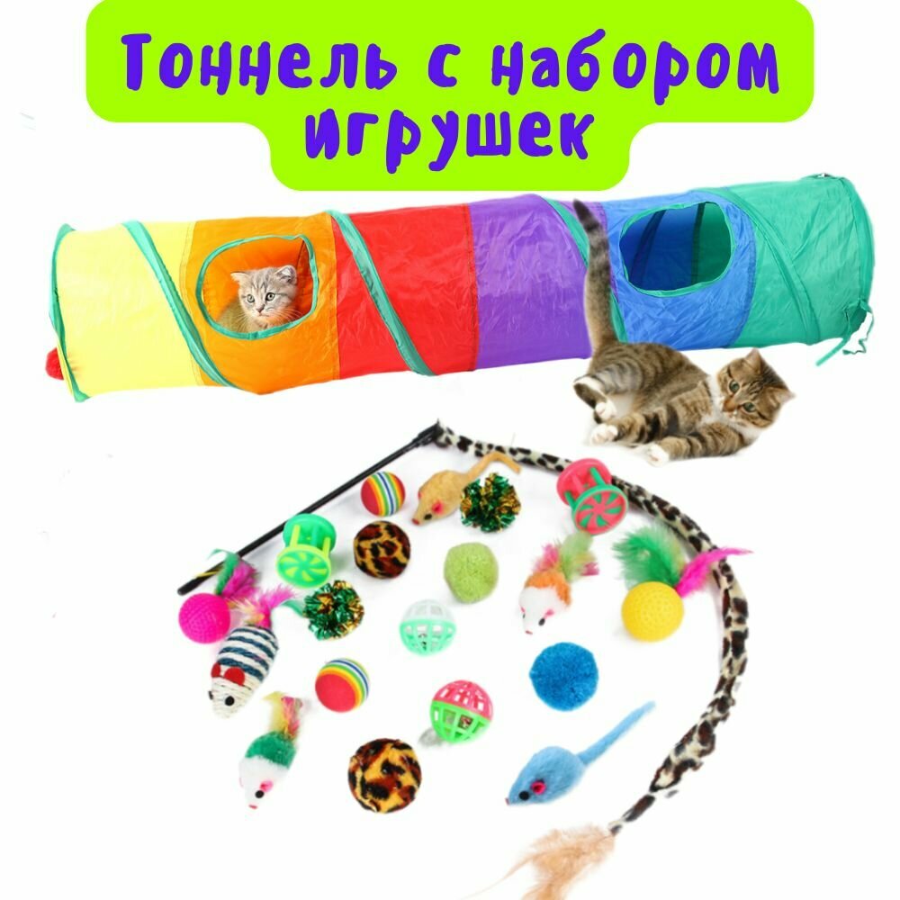 Набор игрушек для кошек и тоннель S образный 130 см,20 игрушек для котов, котят и кошек, для животных