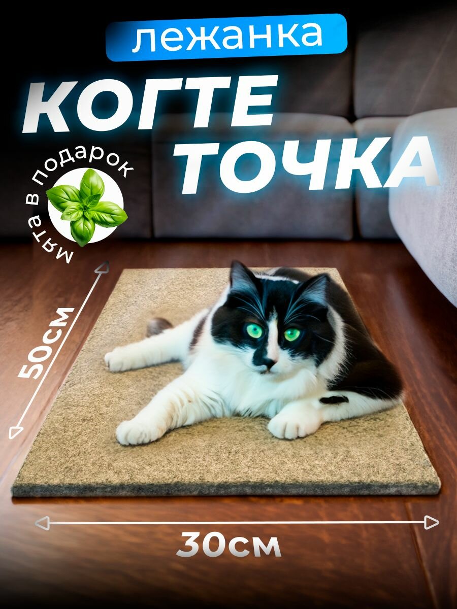 Когтеточка для кошки напольная лежанка с кошачьей мятой, 50х30 см/ бежевая интересное: