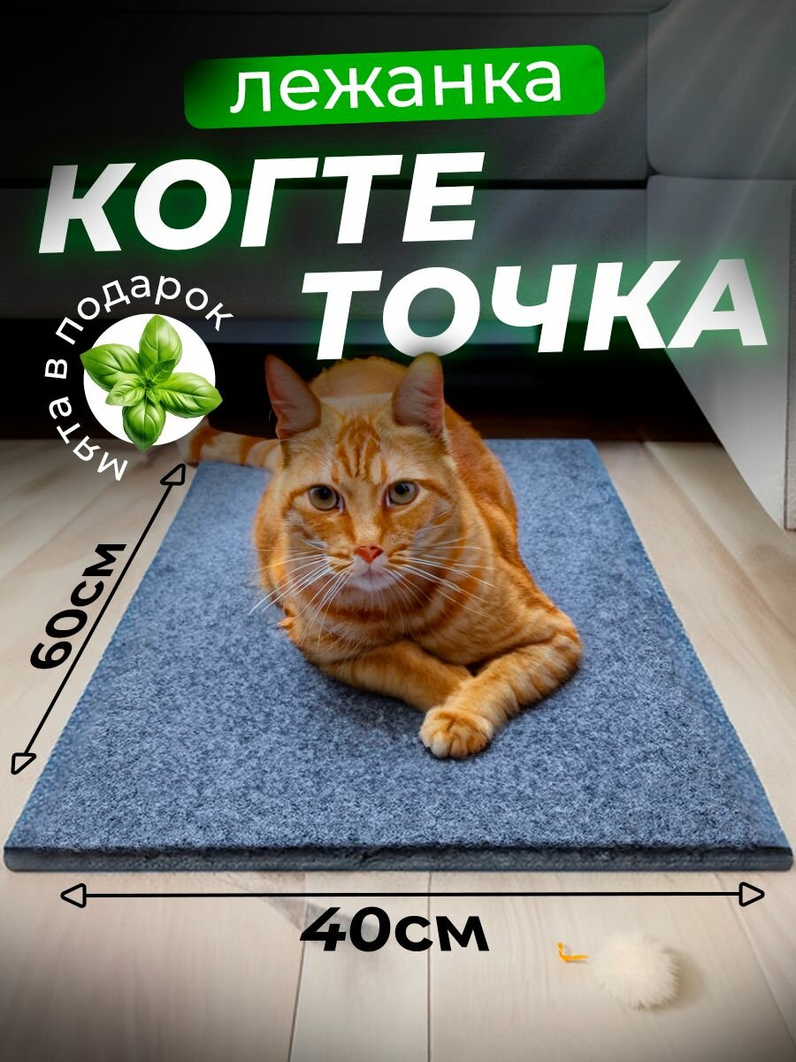 Когтеточка для кошки напольная лежанка с кошачьей мятой, 60х40 см/ серая интересное: