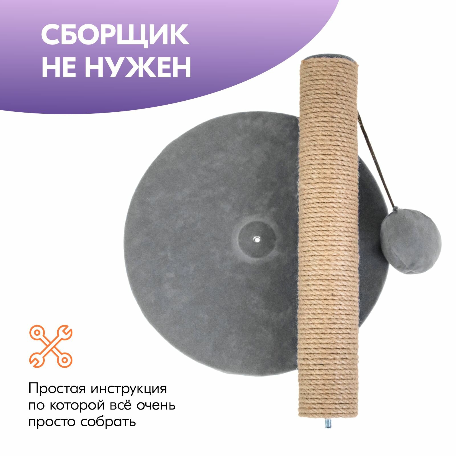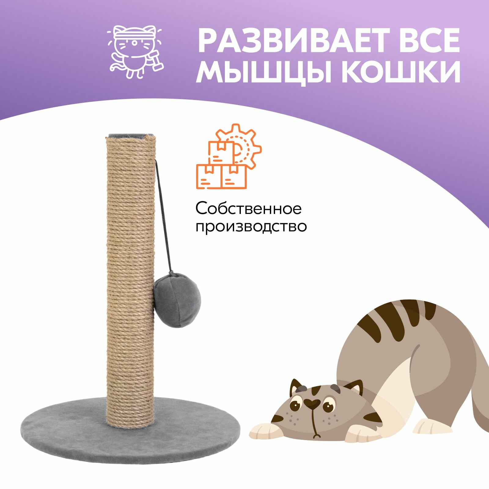 Купить Когтеточка-столбик вельвет "PetTails" круглая с помпоном 29*h39см (джут, ткань вельвет) серая