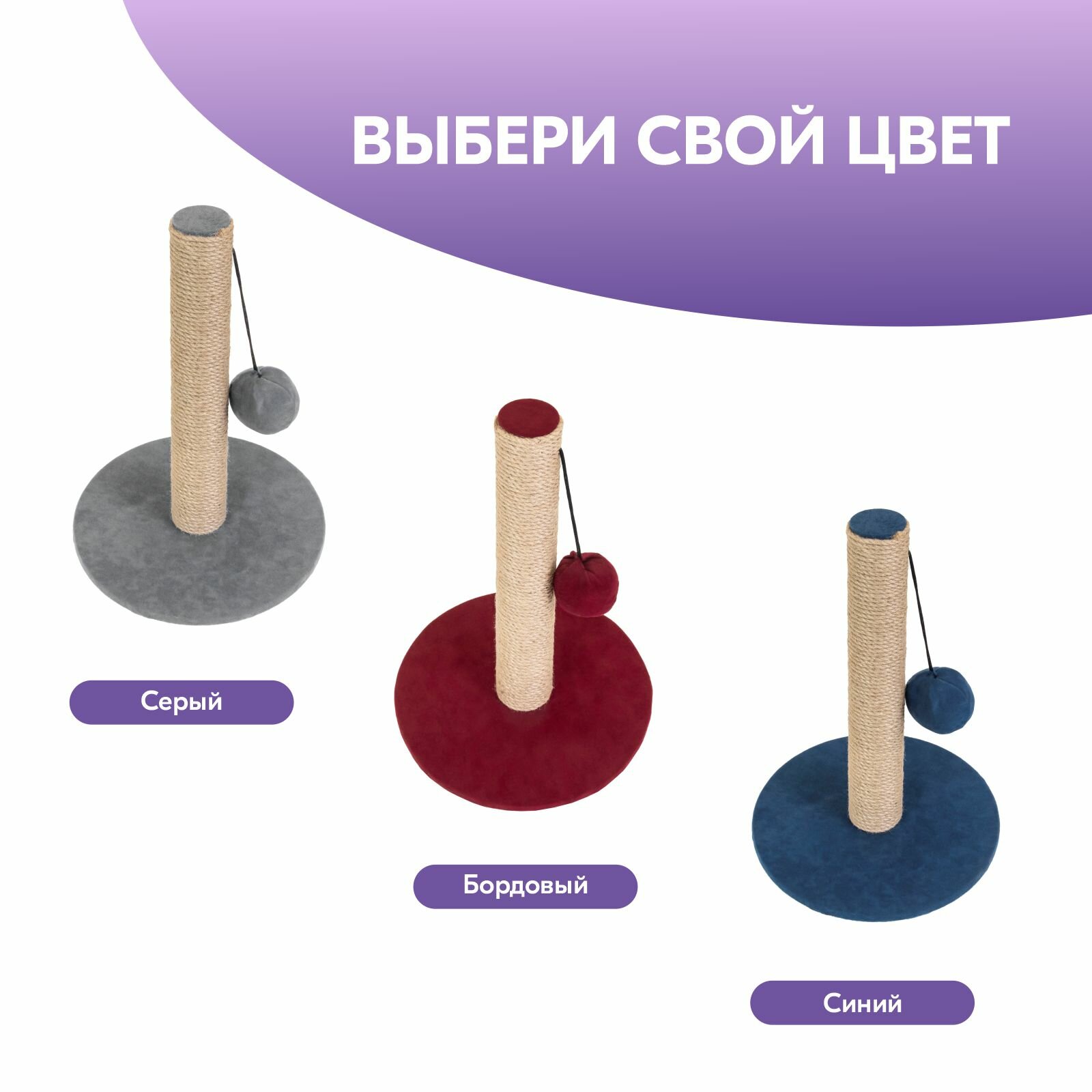 Когтеточка-столбик вельвет "PetTails" круглая с помпоном 29*h39см (джут, ткань вельвет) серая интересное: