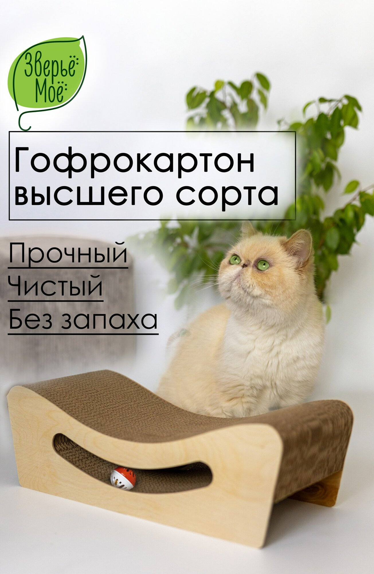 Когтеточка-лежанка картон "Зверьё Моё" улыбка с игрушкой интересное: