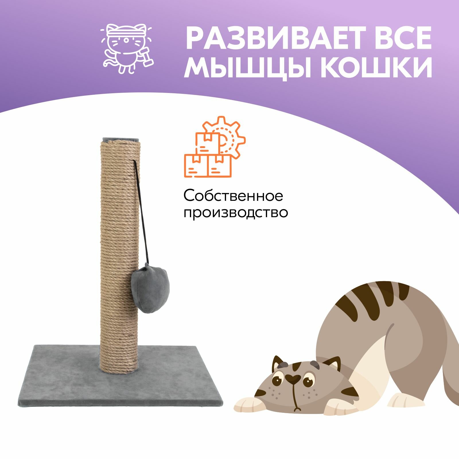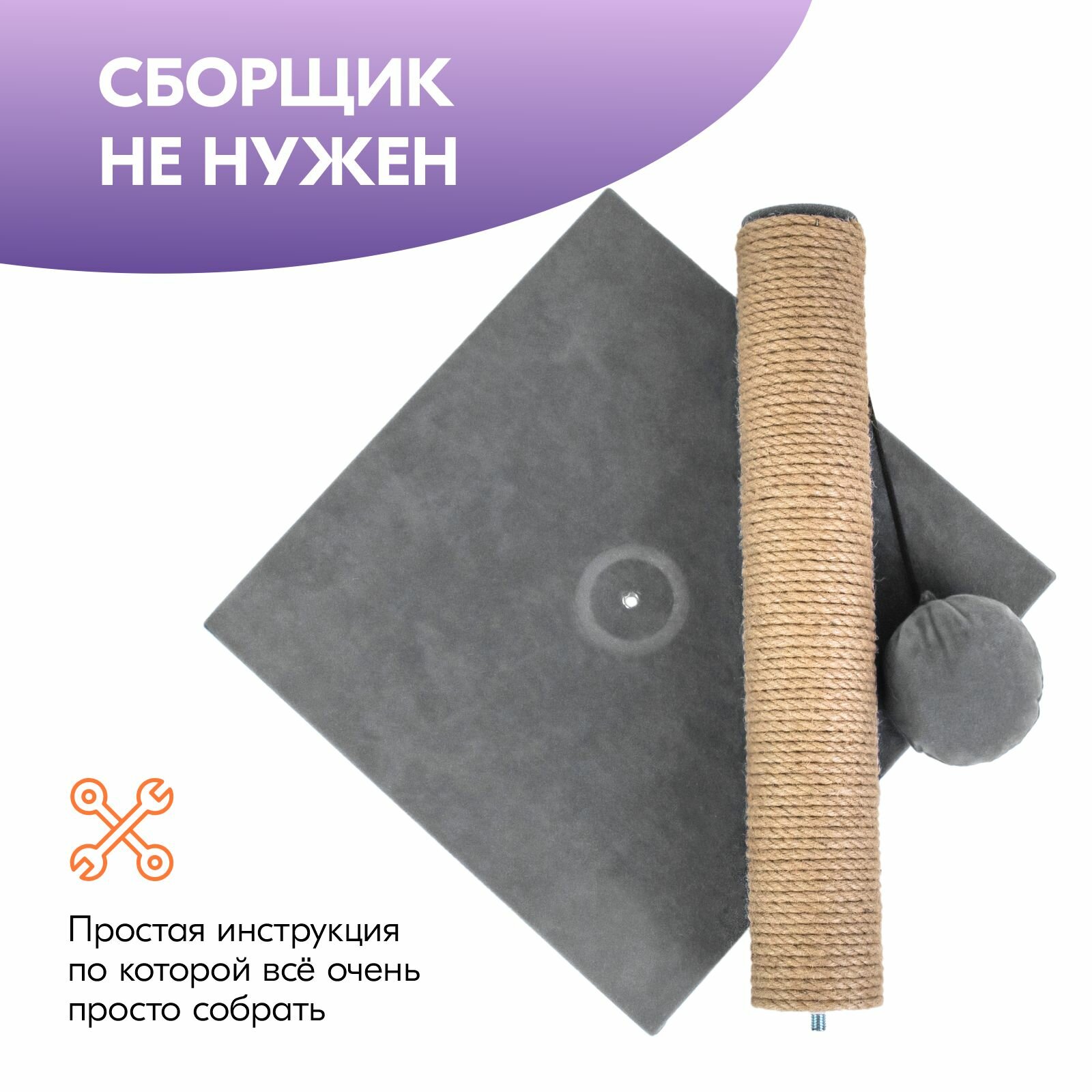 Когтеточка-столбик вельвет "PetTails" квадратная с помпоном 30х30хh39см (джут, ткань вельвет) серая интересное: