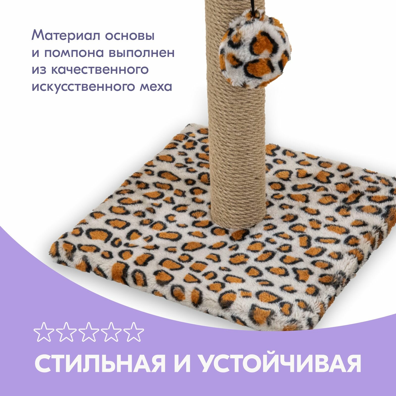 Когтеточка-столбик африка квадратная "PetTails", 30*30*50см (мех, джут) леопард