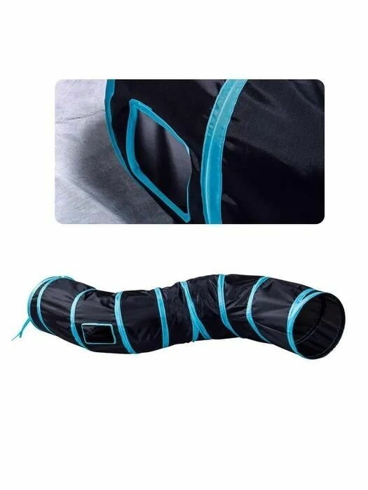 Туннель либиринт для кошек ZooWell Прямой/S-образный 123см, цвет синий/голубой